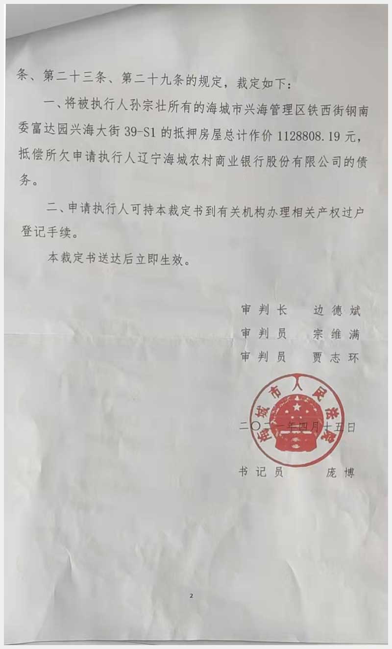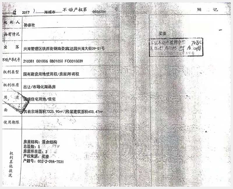 地址:海城市興海管理區(qū)興海大街39-S1號(hào)房產(chǎn) 標(biāo)的號(hào):152