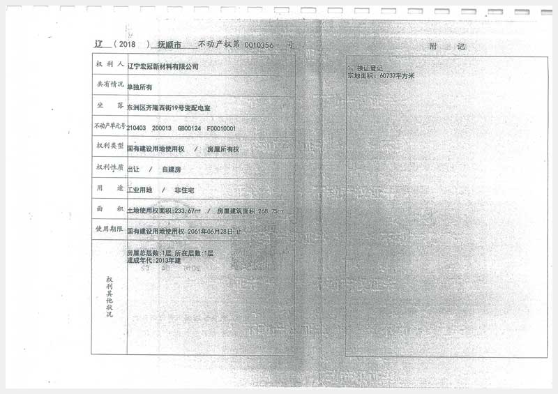 名稱:撫順市東洲區(qū)齊隆西街19號房產(chǎn)及土地使用權(quán) 面積:房產(chǎn):13454.25㎡、土地:48237㎡ 瀏覽次數(shù):1176