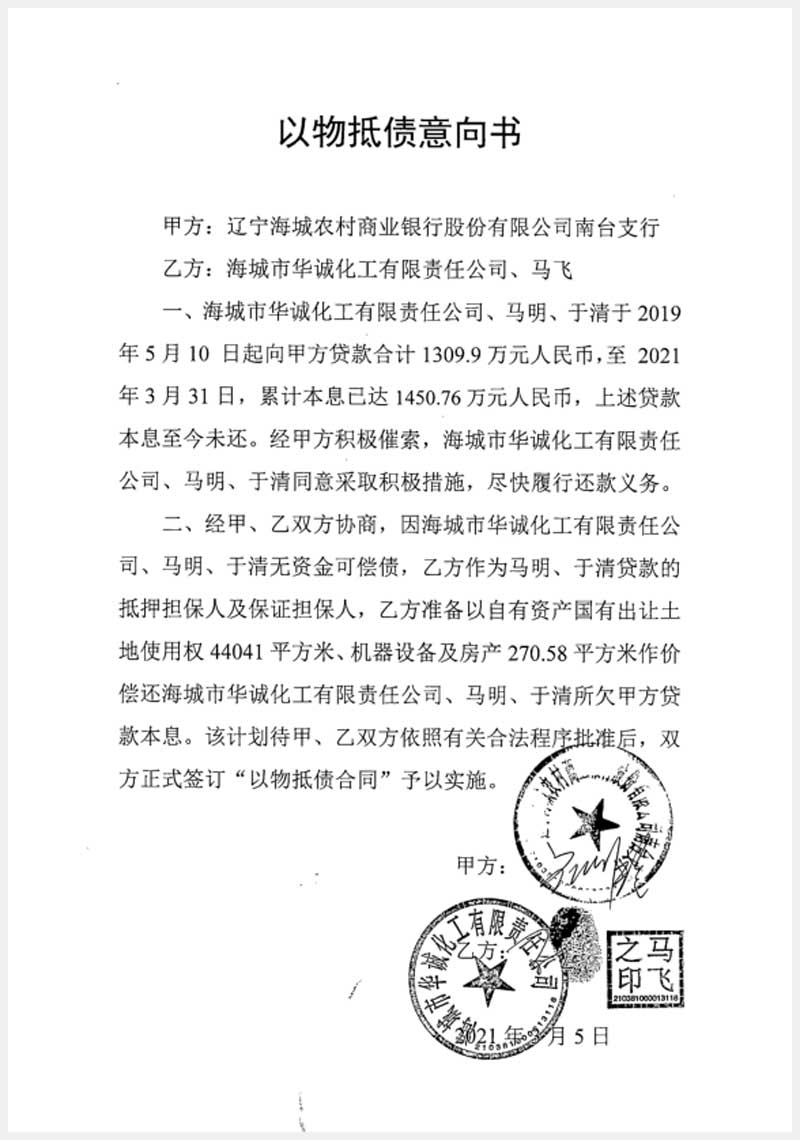 189-1號(hào) 海城市華誠(chéng)華工有限責(zé)任公司名下土地及機(jī)器設(shè)備