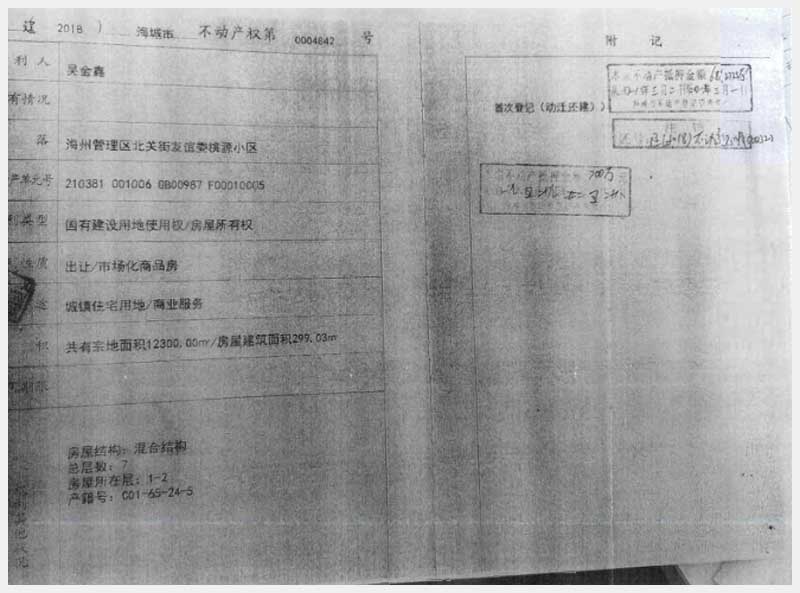190號 海城市海洲管理區(qū)北關(guān)街友誼委桃園小區(qū)房產(chǎn)