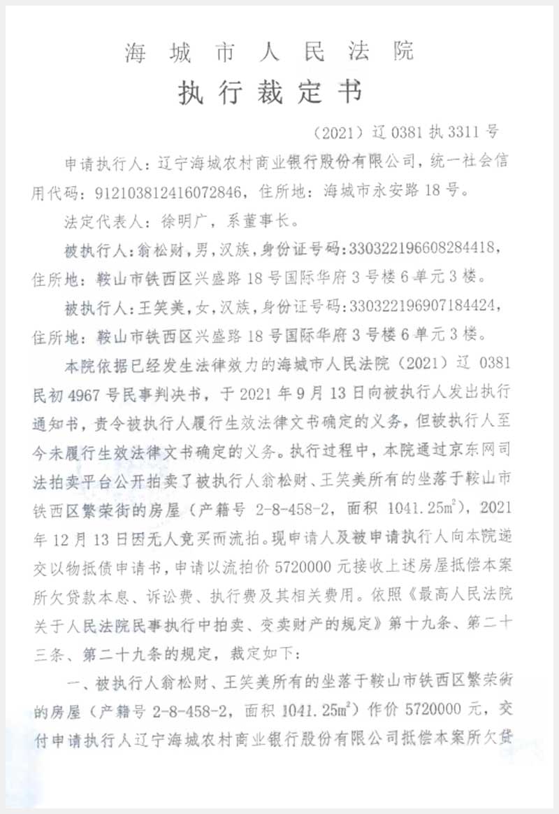 地址:鞍山市鐵西區(qū)繁榮街 標(biāo)的號:191