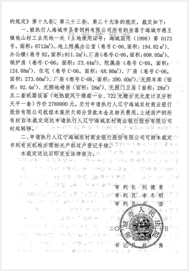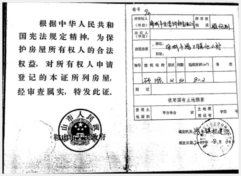 196號 海城市感王鎮(zhèn)他山村房產(chǎn)、土地使用權(quán)及機(jī)器設(shè)備