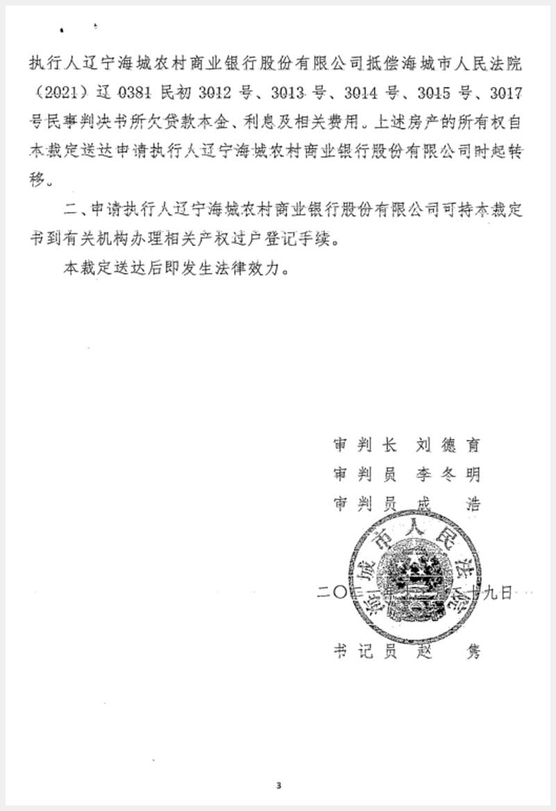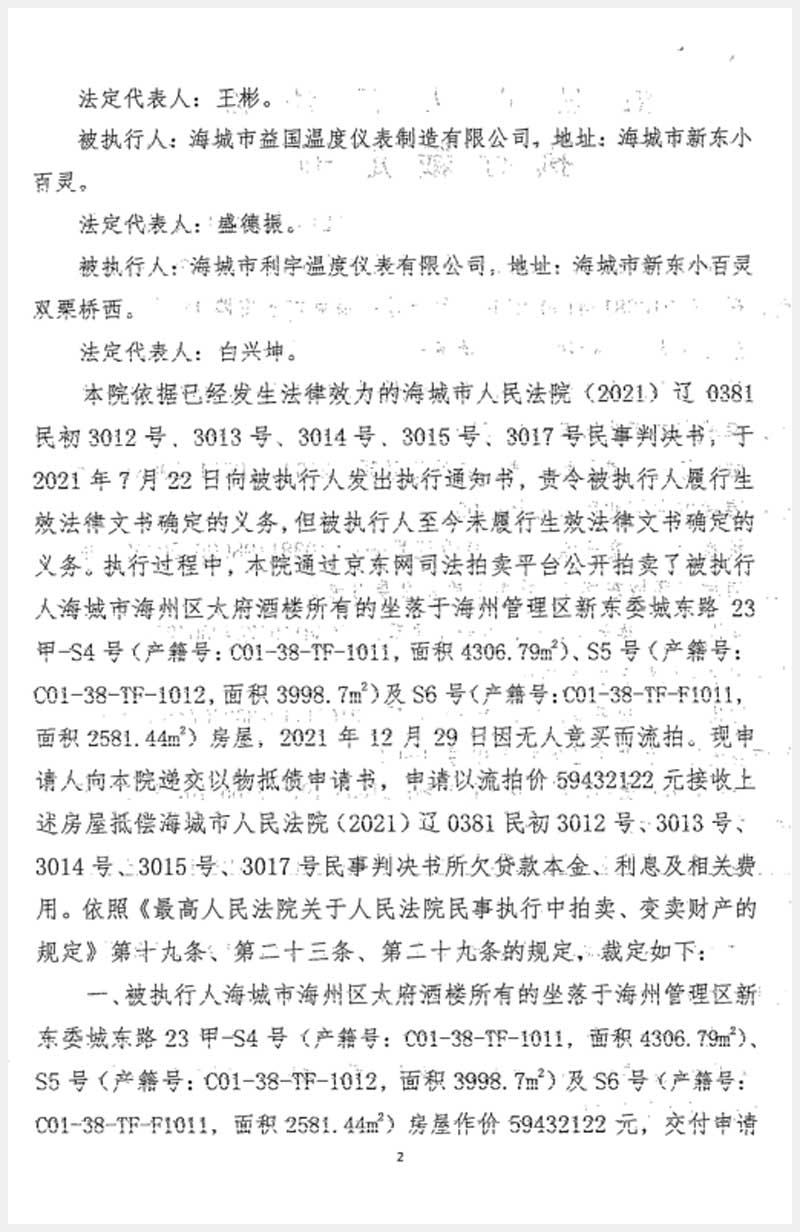地址:海城市海州管理區(qū)東關(guān)街新東委 標(biāo)的號:230