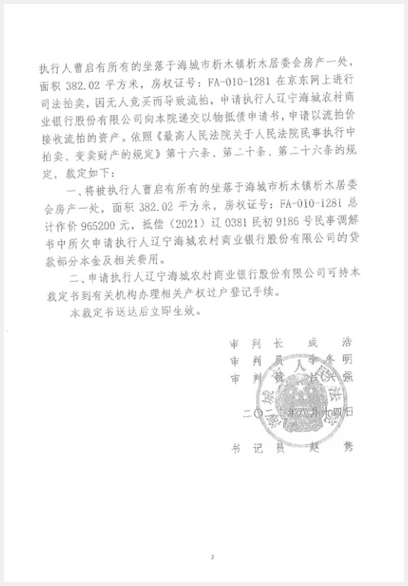 遼寧嘉和拍賣有限公司   咨詢熱線:024-22529012