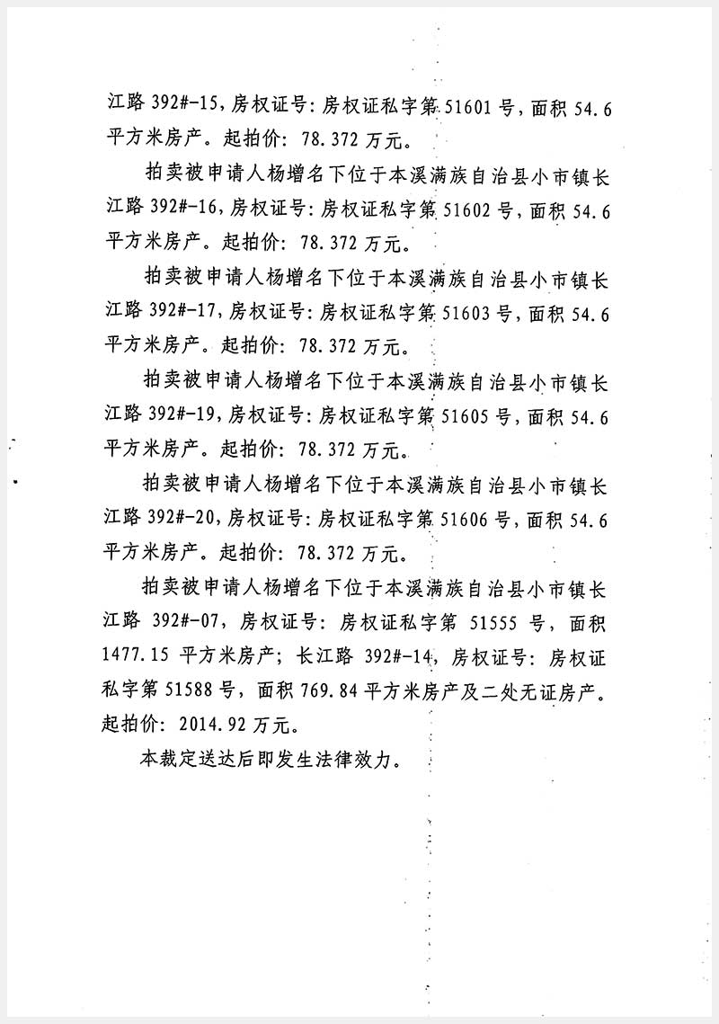 165號 本溪滿族自治縣小市鎮(zhèn)長江路392號房產(chǎn)