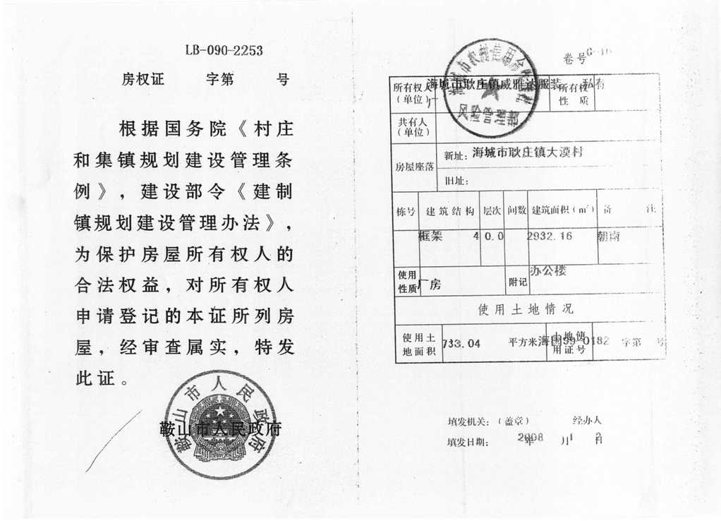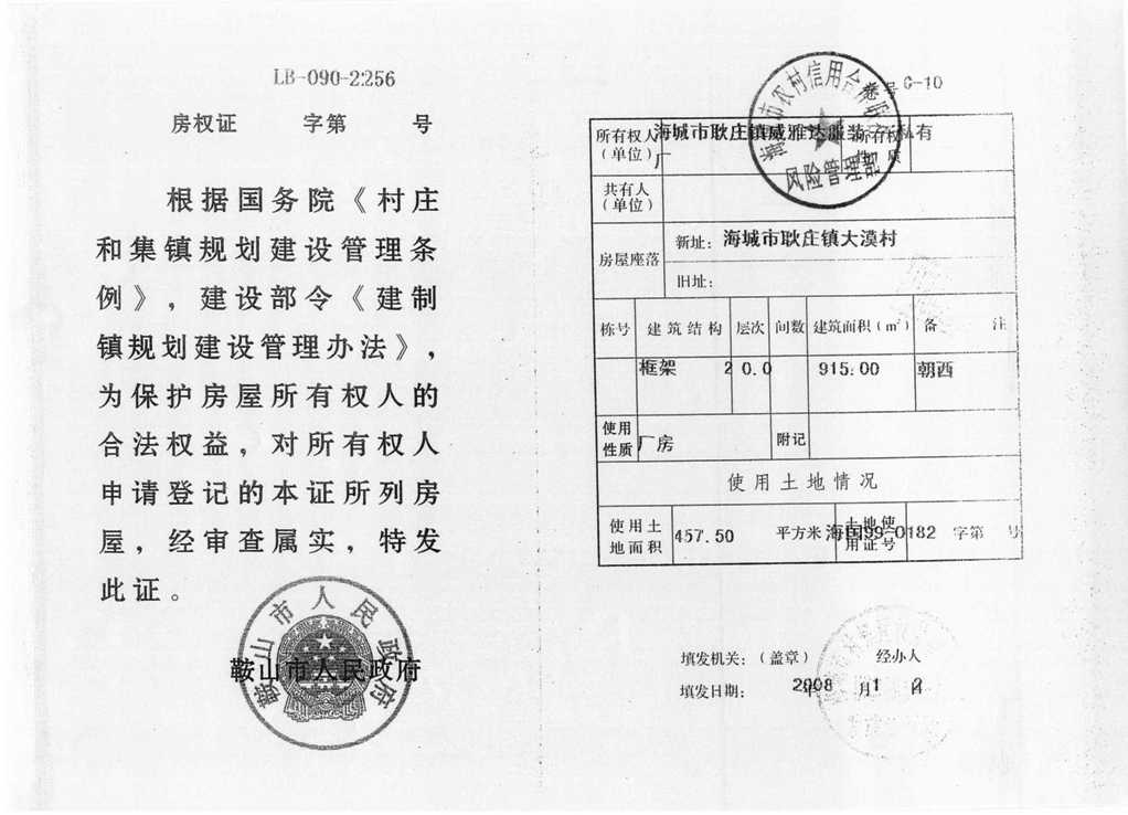 49號 海城市耿莊大莫村房產(chǎn)、國有出讓土地使用權(quán)