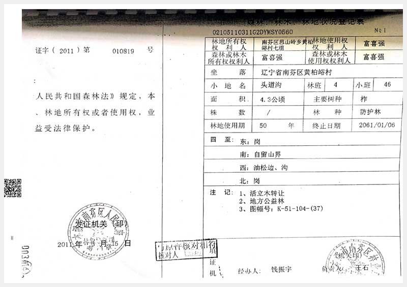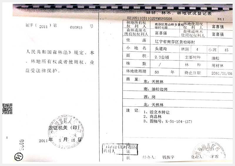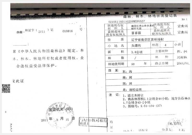 33號 南芬區(qū)黃柏村頭道溝林權(quán)