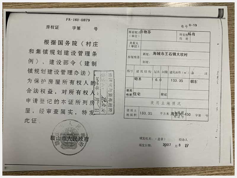 33號 海城市王石鎮(zhèn)大坎村房產(chǎn)