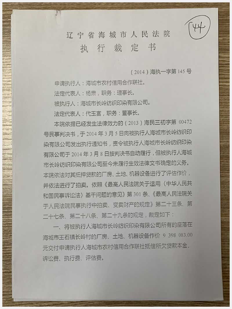 地址:海城市王石鎮(zhèn)長(zhǎng)嶺村 標(biāo)的號(hào):44