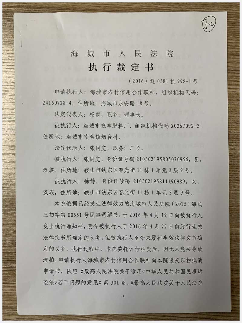 54號(hào) 海城市南臺(tái)鎮(zhèn)煙臺(tái)村房產(chǎn)及國有土地使用權(quán)