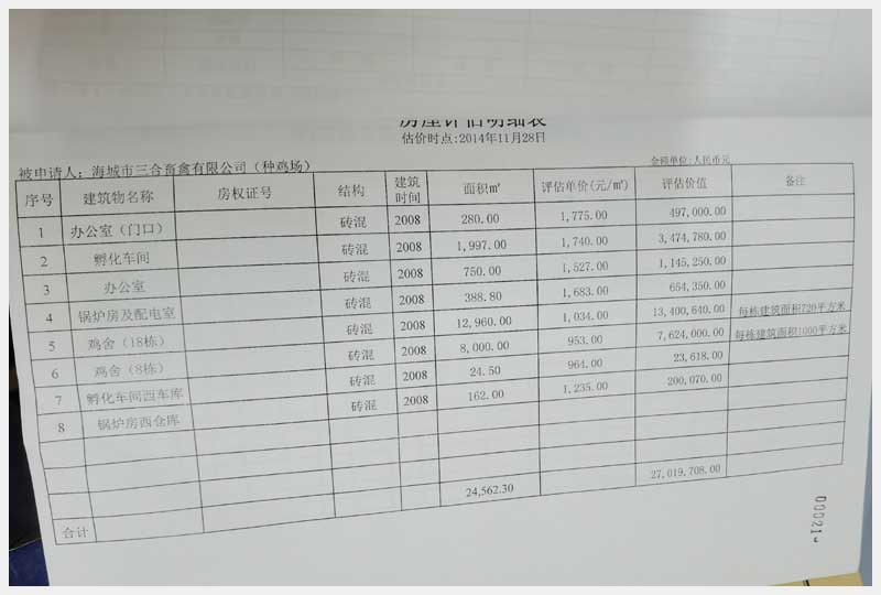 名稱:海城市高坨鎮(zhèn)桑樹村房產(chǎn)、構筑物及其他輔助設施 面積:房產(chǎn):3602.3㎡、雞舍:20960㎡ 瀏覽次數(shù):1638