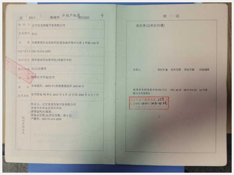 名稱:海城市興海管理區(qū)站前街利民委金海岸海州大街1甲棟5處房產(chǎn) 面積:104.3㎡/戶(5、6、8、10、11樓) 瀏覽次數(shù):1711