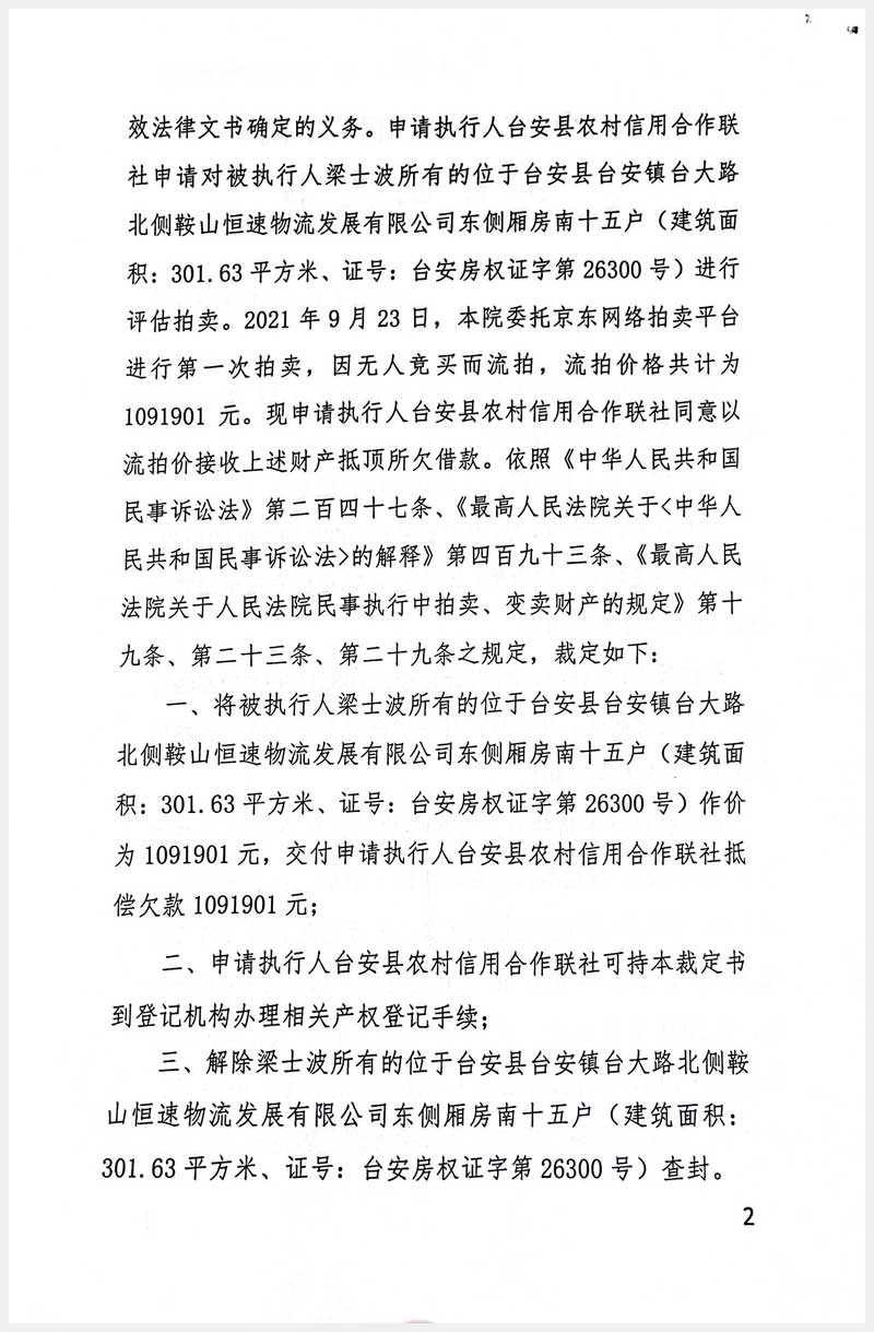 地址:臺(tái)安鎮(zhèn)臺(tái)大路北側(cè)鞍山恒速物流發(fā)展有限公司 標(biāo)的號(hào):117