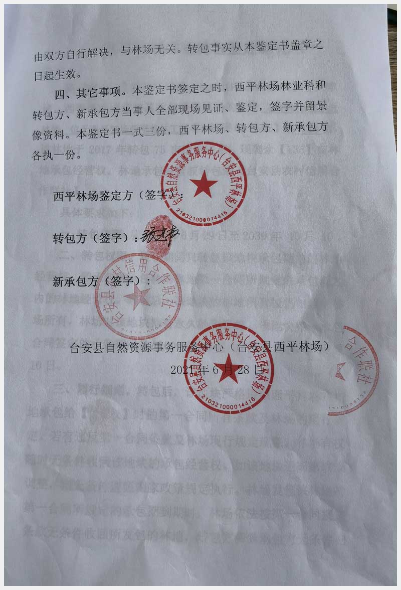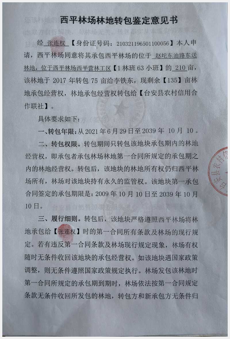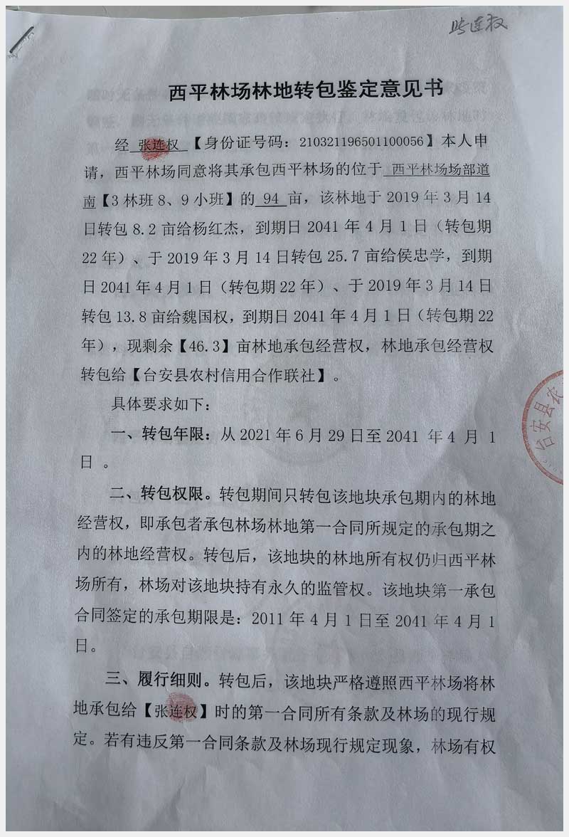 124號 臺安縣西平林場林地承包經(jīng)營權及西平村土地承包經(jīng)營權