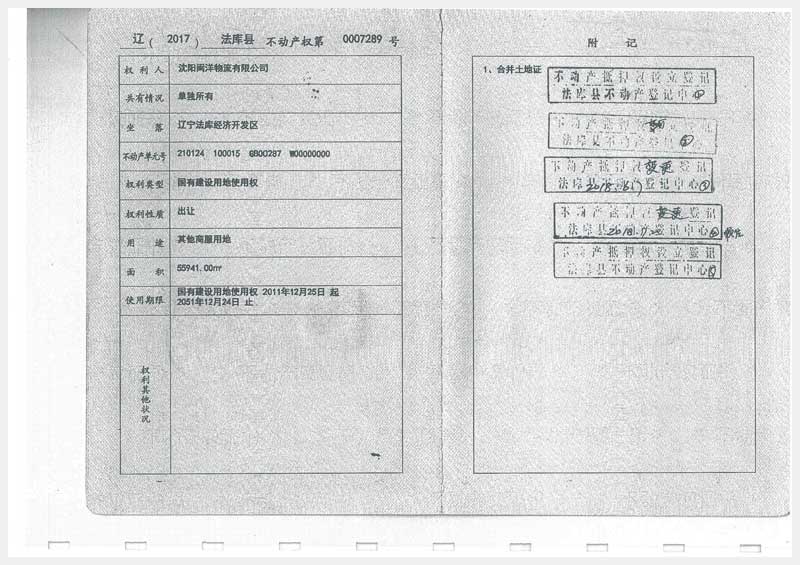 22號(hào) 沈陽(yáng)市法庫(kù)縣經(jīng)濟(jì)開(kāi)發(fā)區(qū)6號(hào)房產(chǎn)及土地使用權(quán)