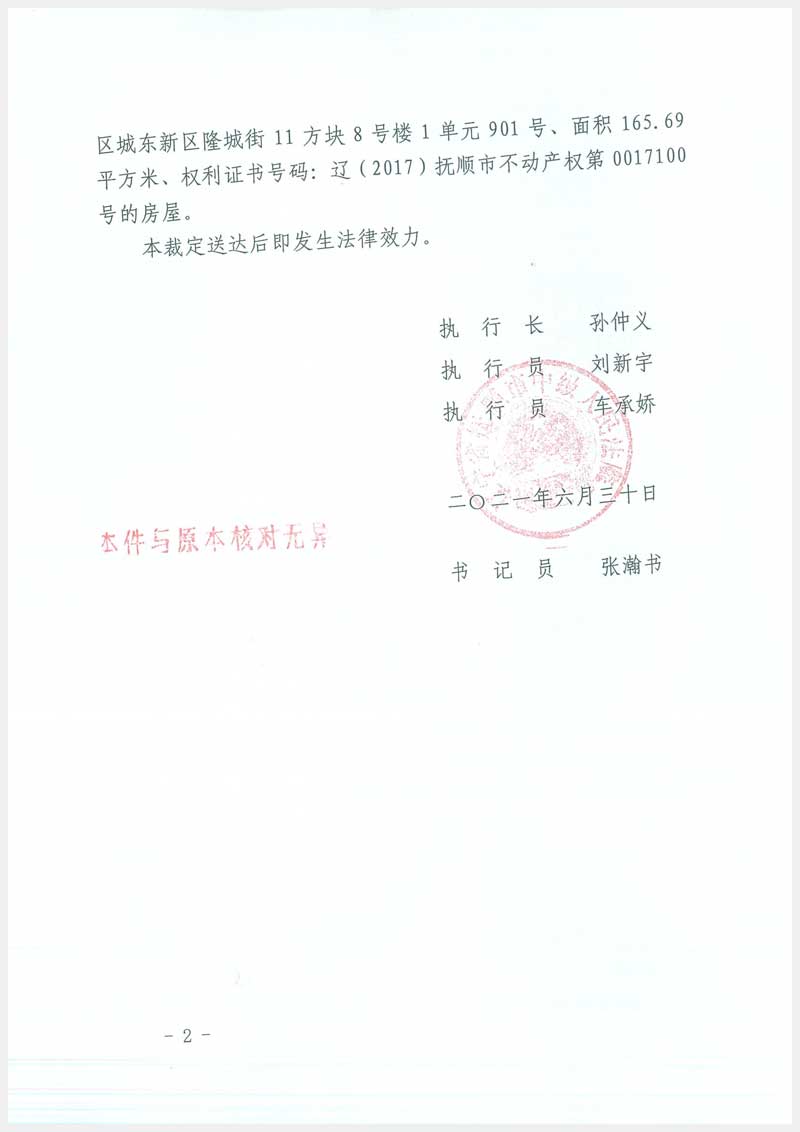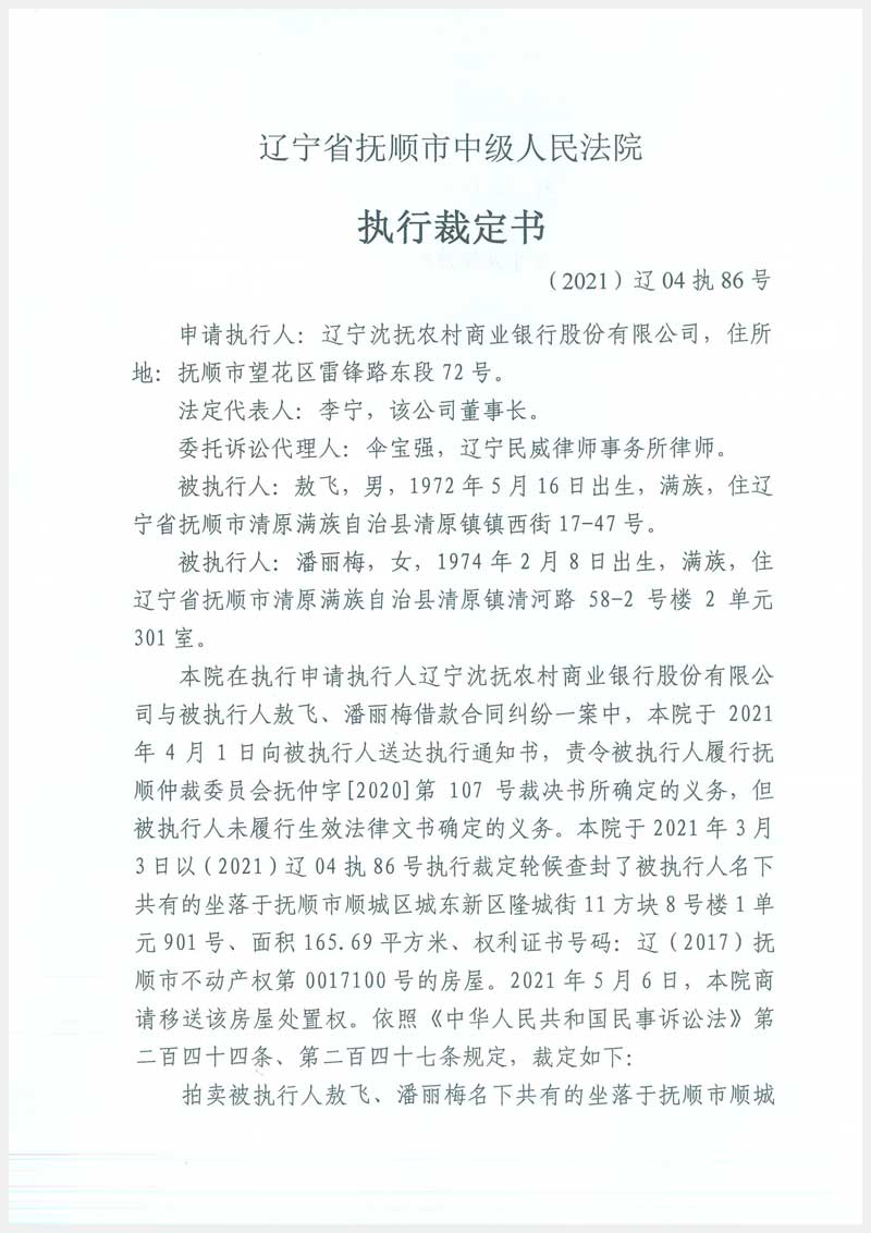 23號(hào) 撫順市順城區(qū)城東新區(qū)隆城街11方塊8號(hào)樓1單元901號(hào)房產(chǎn)