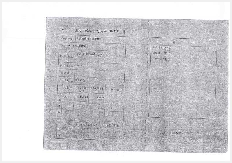 名稱:本溪市溪湖區(qū)礦新街208棟-1層1門至6門房產(chǎn) 面積:1門:89.82㎡;2門:120.2㎡;3門:212.98㎡;4門:141.51㎡;5門:138.63㎡;6門:141.07㎡ 瀏覽次數(shù):1124