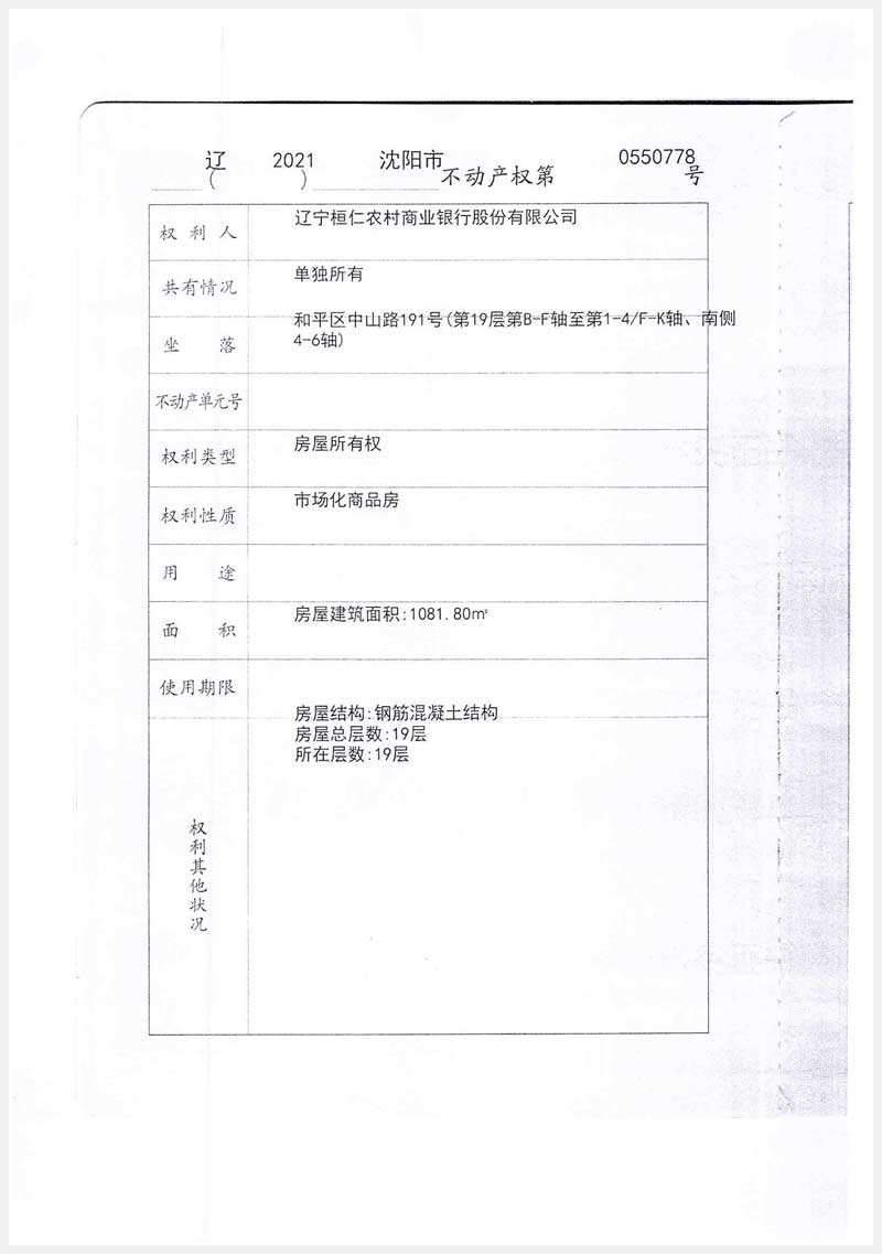 59號(hào) 沈陽(yáng)市和平區(qū)中山路191號(hào)第19層第B-F軸至第1-4/f-k軸南側(cè)4-6軸房產(chǎn)