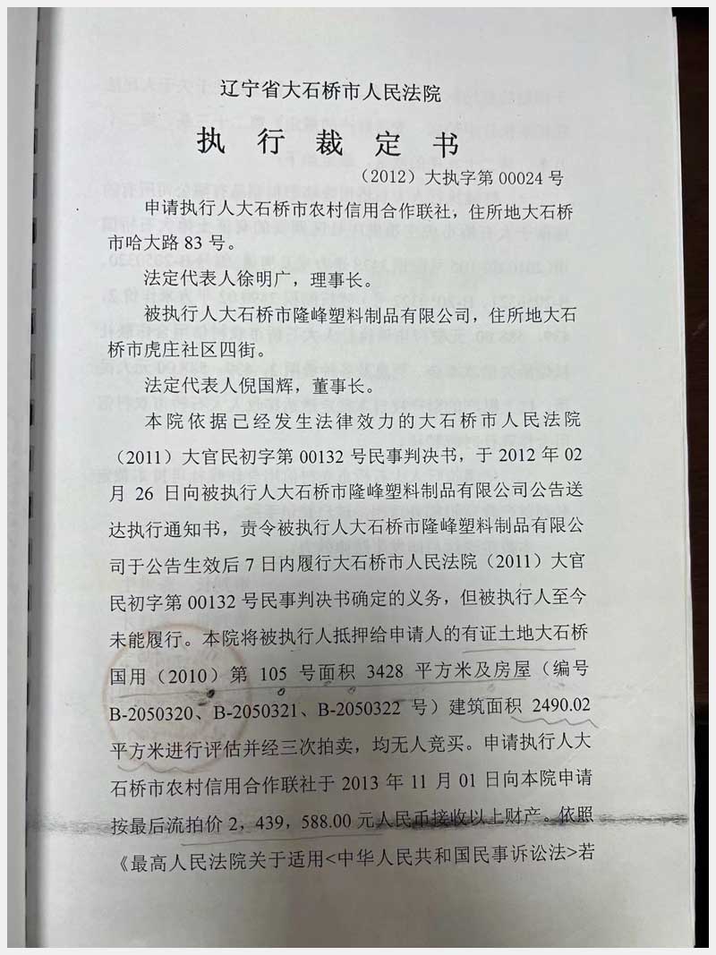 名稱:大石橋市虎莊鎮(zhèn)四村房產(chǎn)及土地使用權(quán) 面積:房產(chǎn):2490.02㎡;土地:3428㎡ 瀏覽次數(shù):892