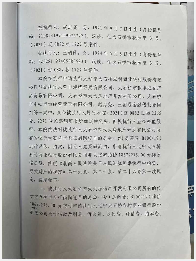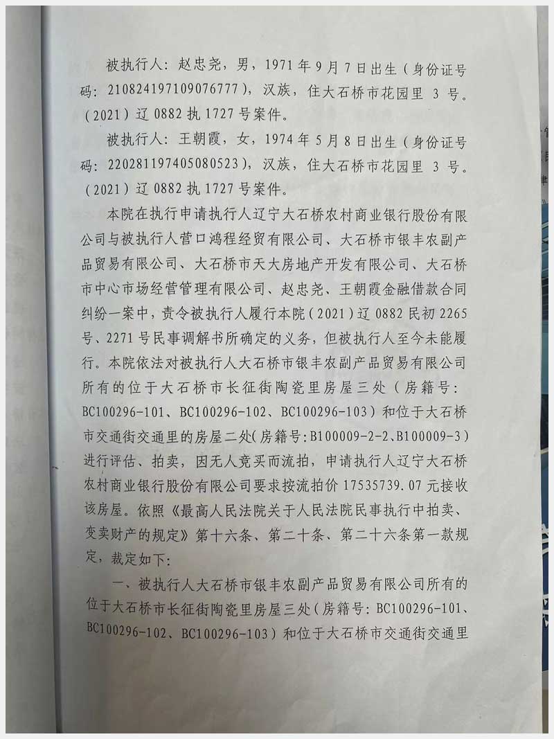 地址:大石橋市長征街陶瓷里 標的號:6