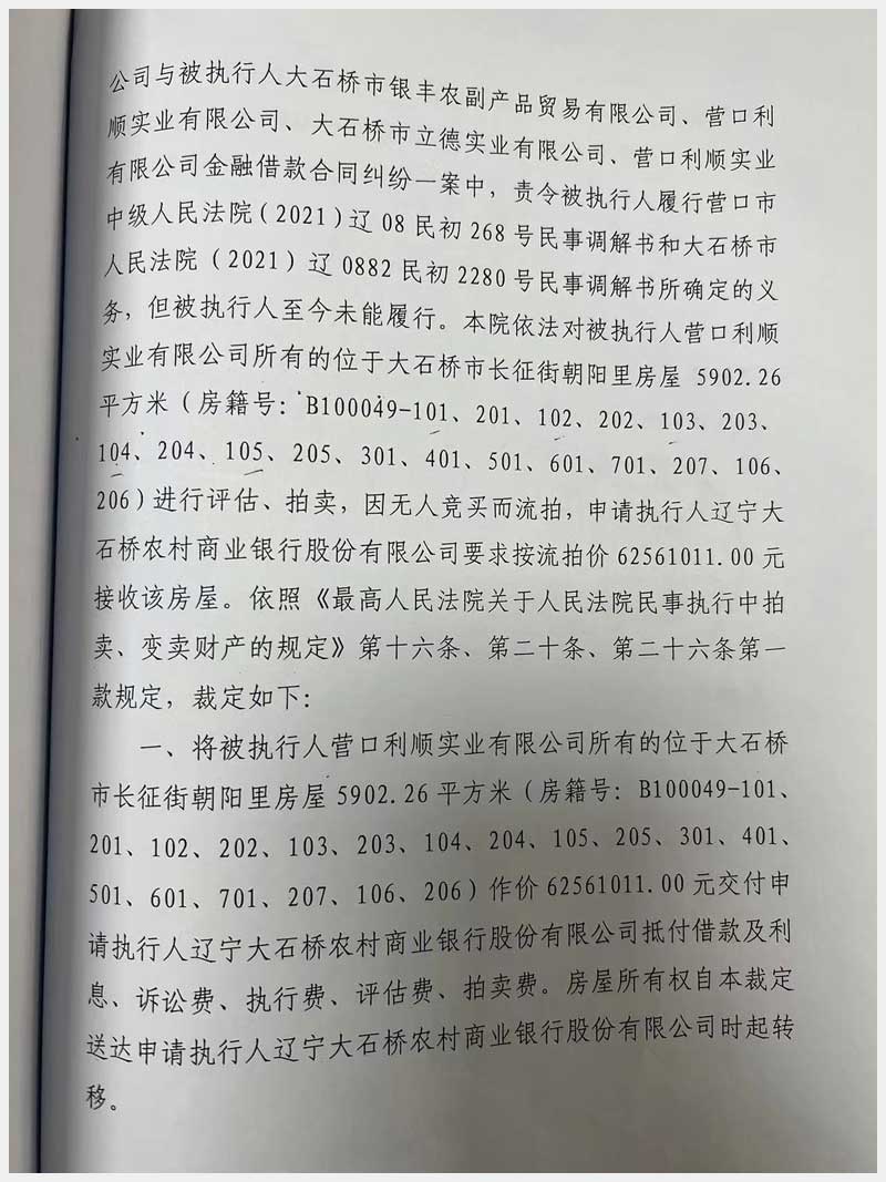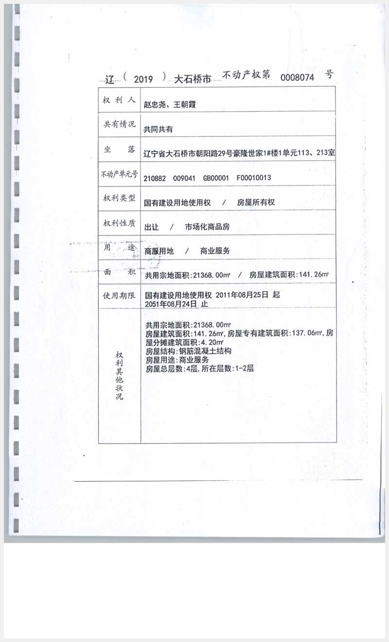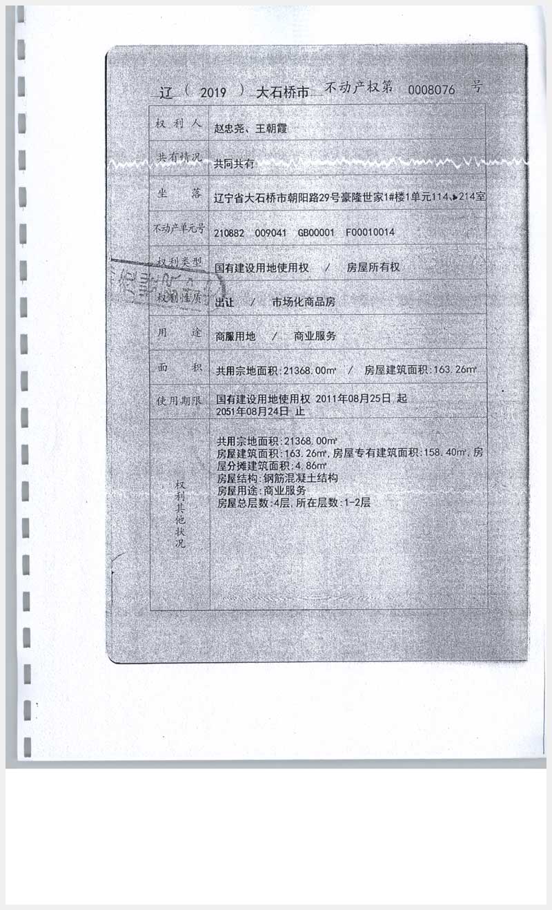 地址:大石橋市朝陽路29號(hào)豪隆世家 標(biāo)的號(hào):11