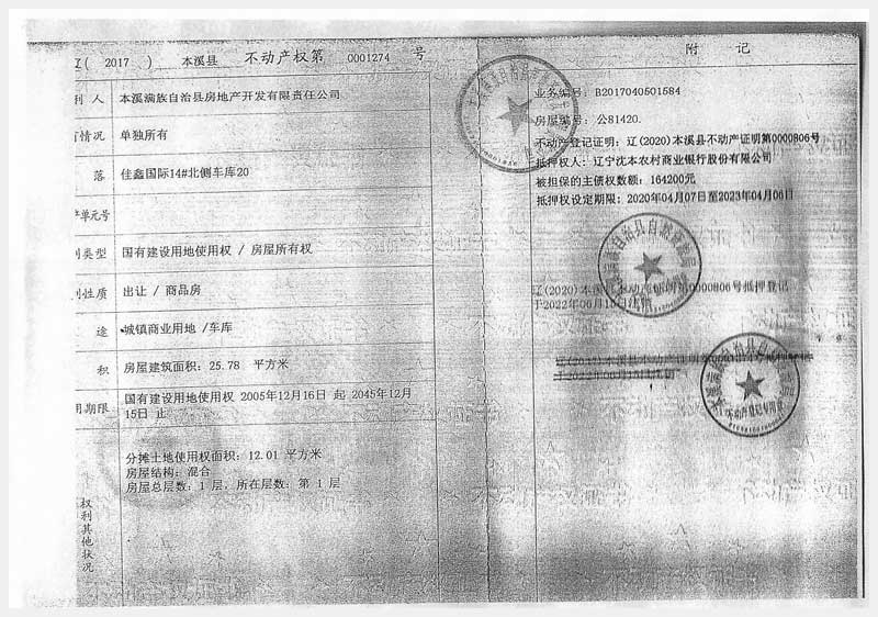 135-9號(hào) 本溪縣佳鑫國(guó)際14#北側(cè)車庫20