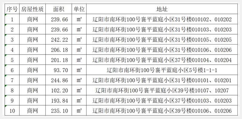10號 遼陽市南環(huán)街100號襄平藍(lán)庭小區(qū)10處門市