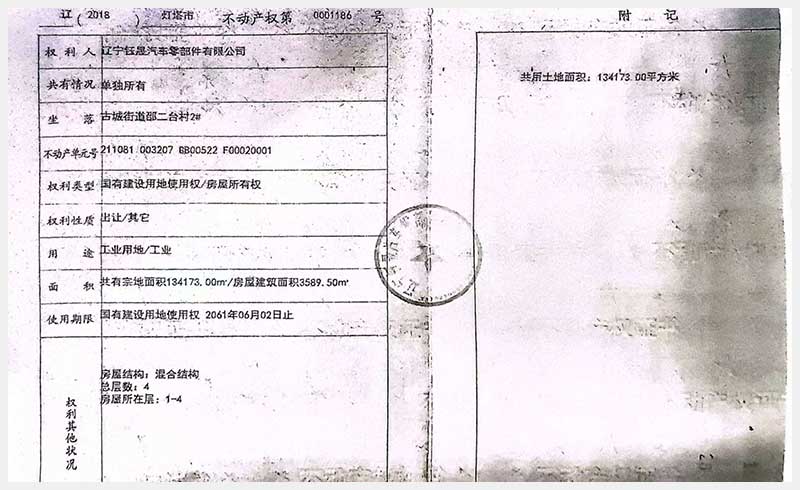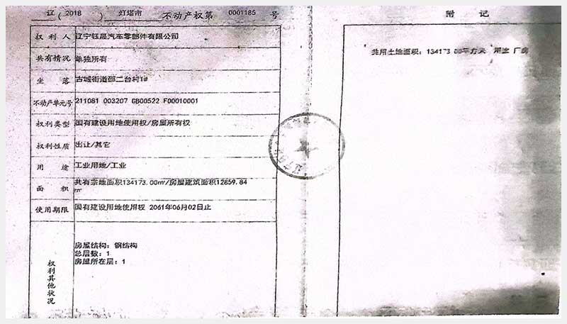 名稱(chēng):燈塔市鐵西工業(yè)園區(qū)古城街道邵二臺(tái)村房產(chǎn)及土地使用權(quán) 面積:房產(chǎn):19,551.64㎡;土地:134,173㎡ 瀏覽次數(shù):437
