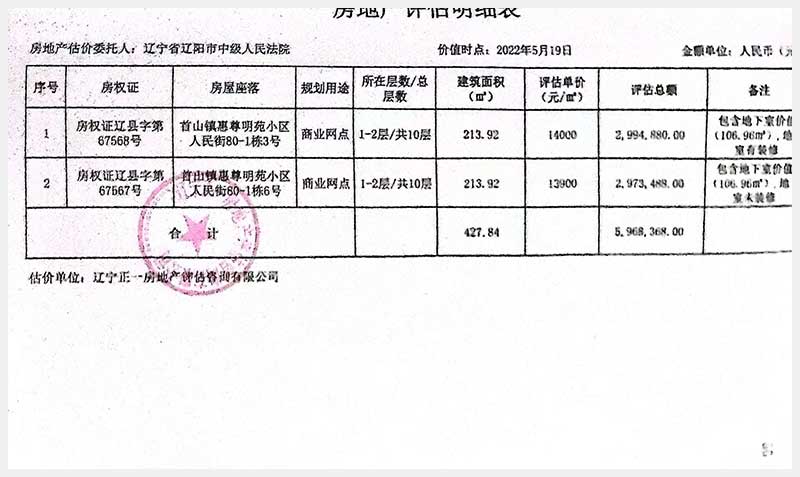 43號(hào) 遼陽市首山鎮(zhèn)惠尊明苑小區(qū)人民街80-1棟3號(hào)、6號(hào)房產(chǎn)