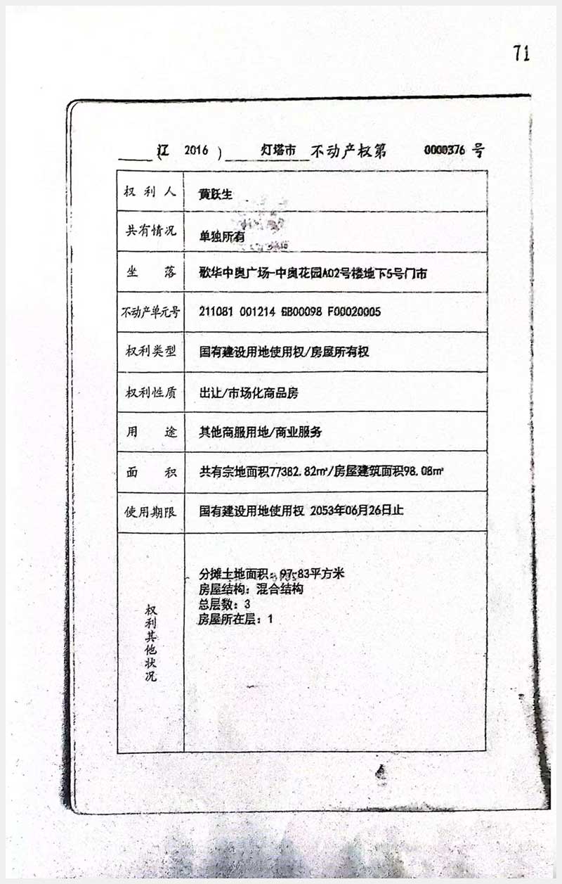 名稱:燈塔市歌華中奧廣場A02號(hào)樓4號(hào)、5號(hào)房產(chǎn) 面積:4號(hào):270.83㎡;5號(hào):269.51㎡ 瀏覽次數(shù):401