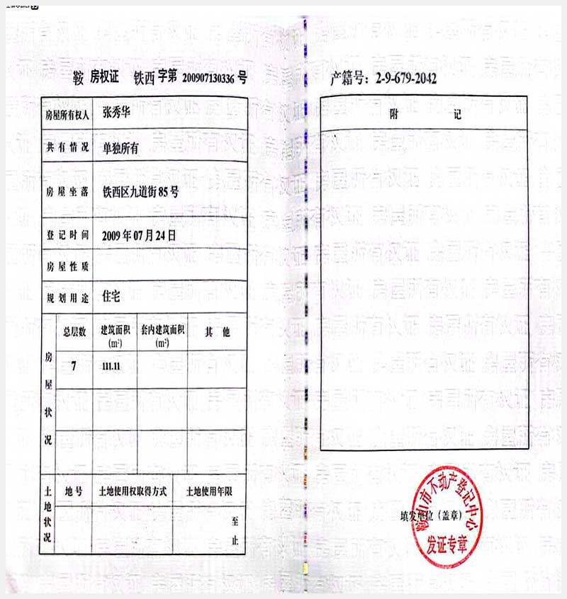 105號(hào) 鞍山市鐵西區(qū)九道街85號(hào)房產(chǎn)
