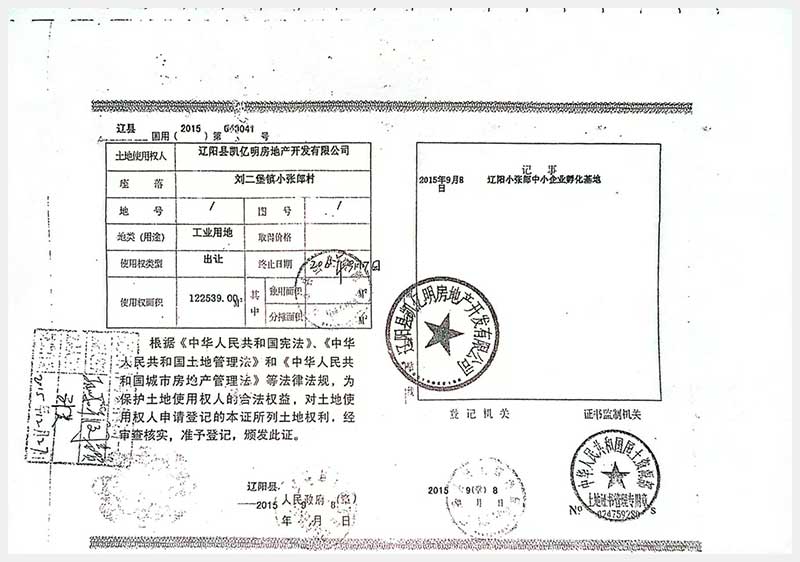 名稱:遼陽縣劉二堡鎮(zhèn)小張郎村土地使用權 面積:122539㎡ 瀏覽次數:95