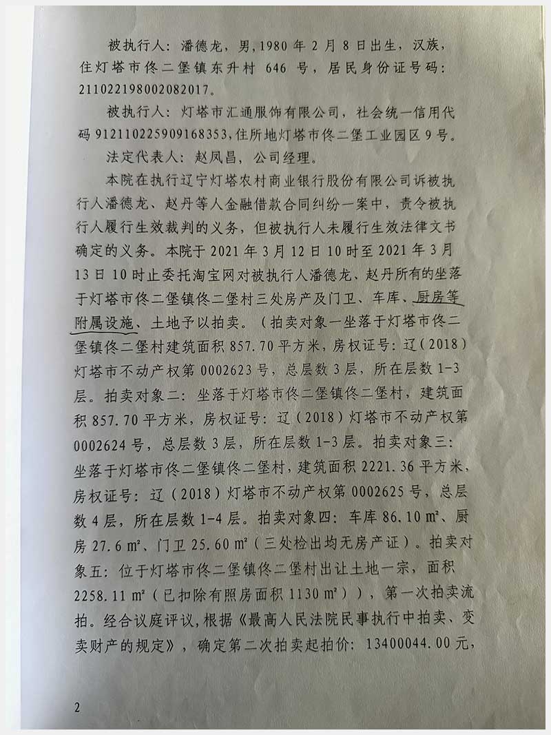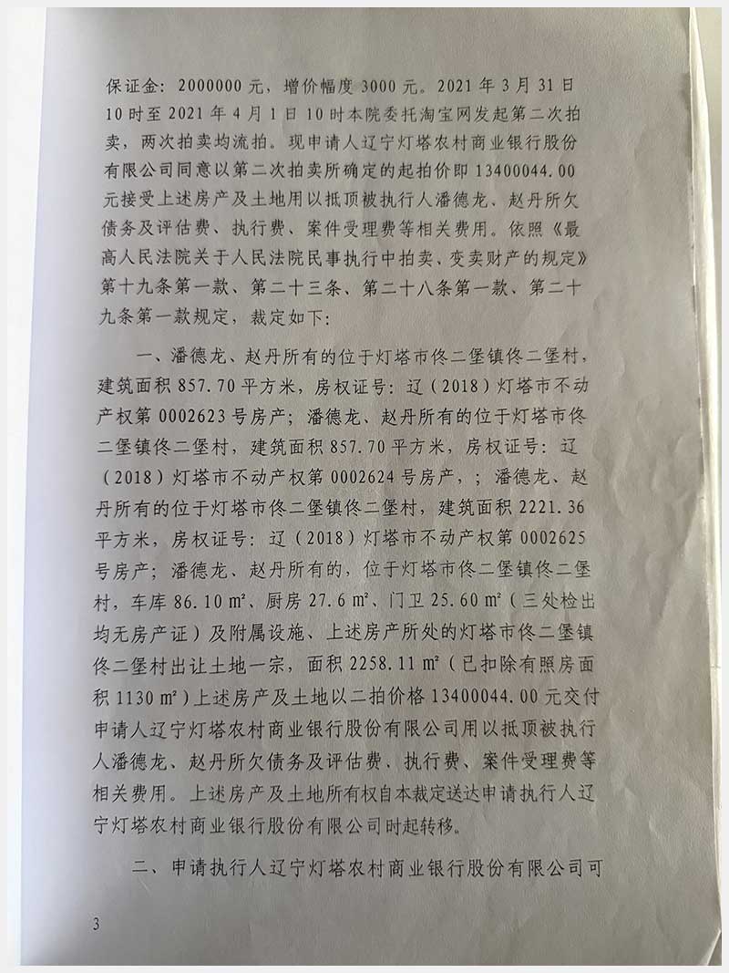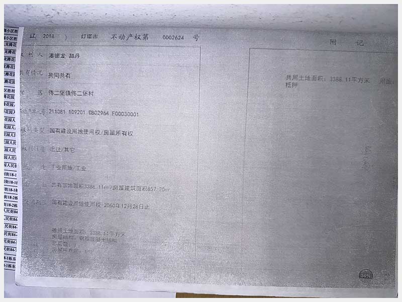 名稱:燈塔市佟二堡鎮(zhèn)佟二堡村房產(chǎn)及土地使用權(quán) 面積:房產(chǎn):有證:3079.06㎡,無證:139.3㎡;土地:3388.11㎡ 瀏覽次數(shù):154