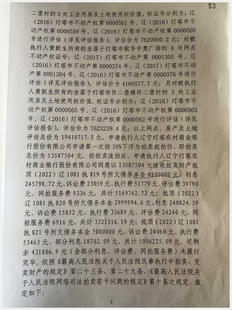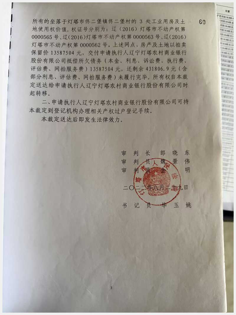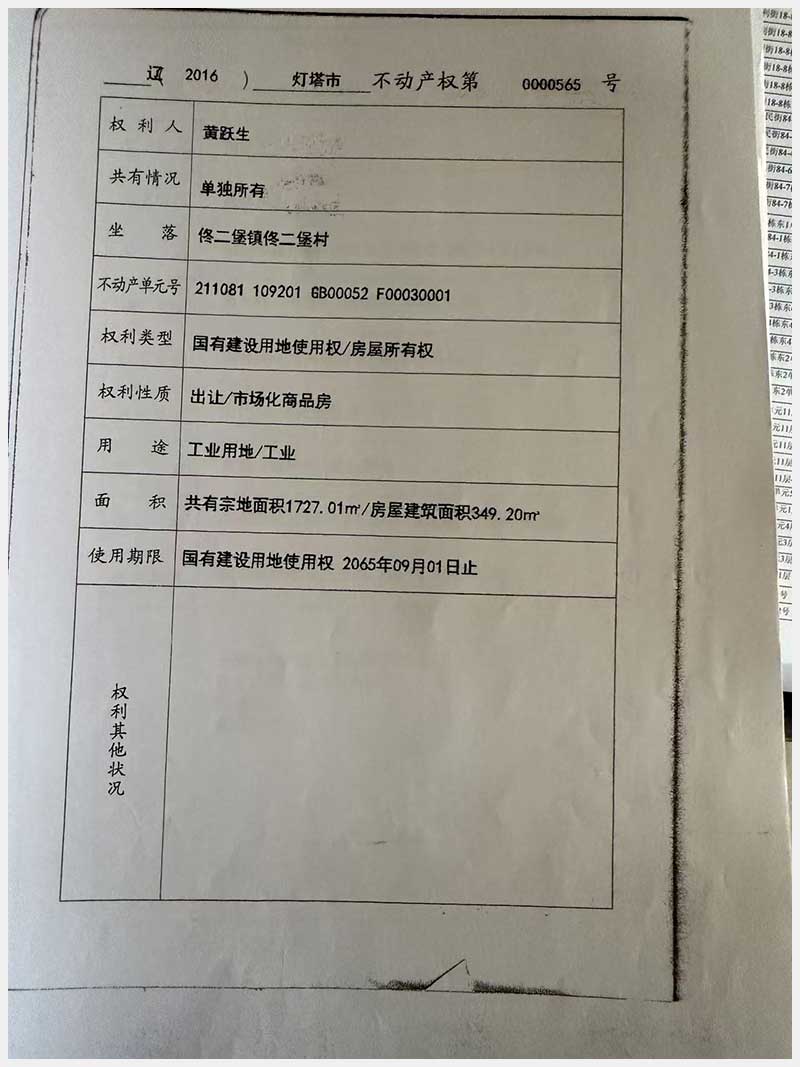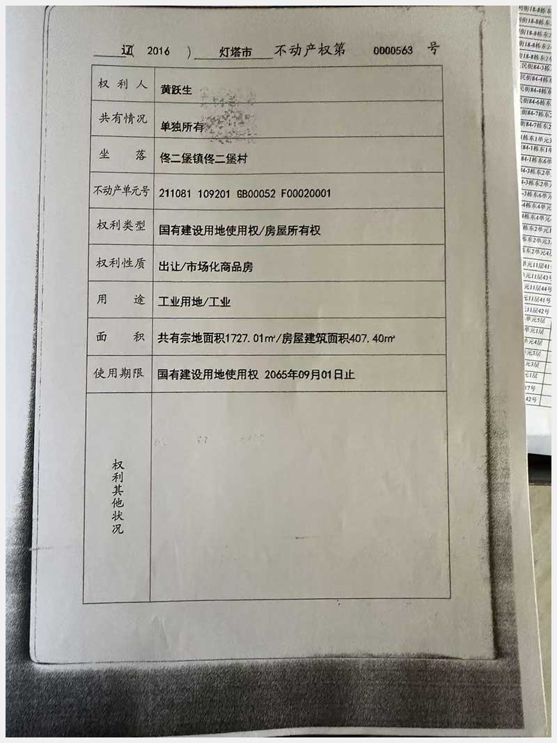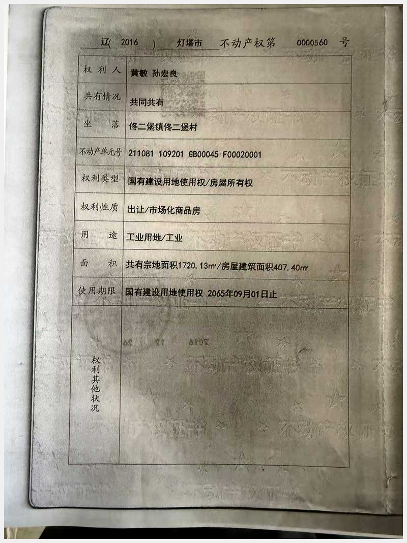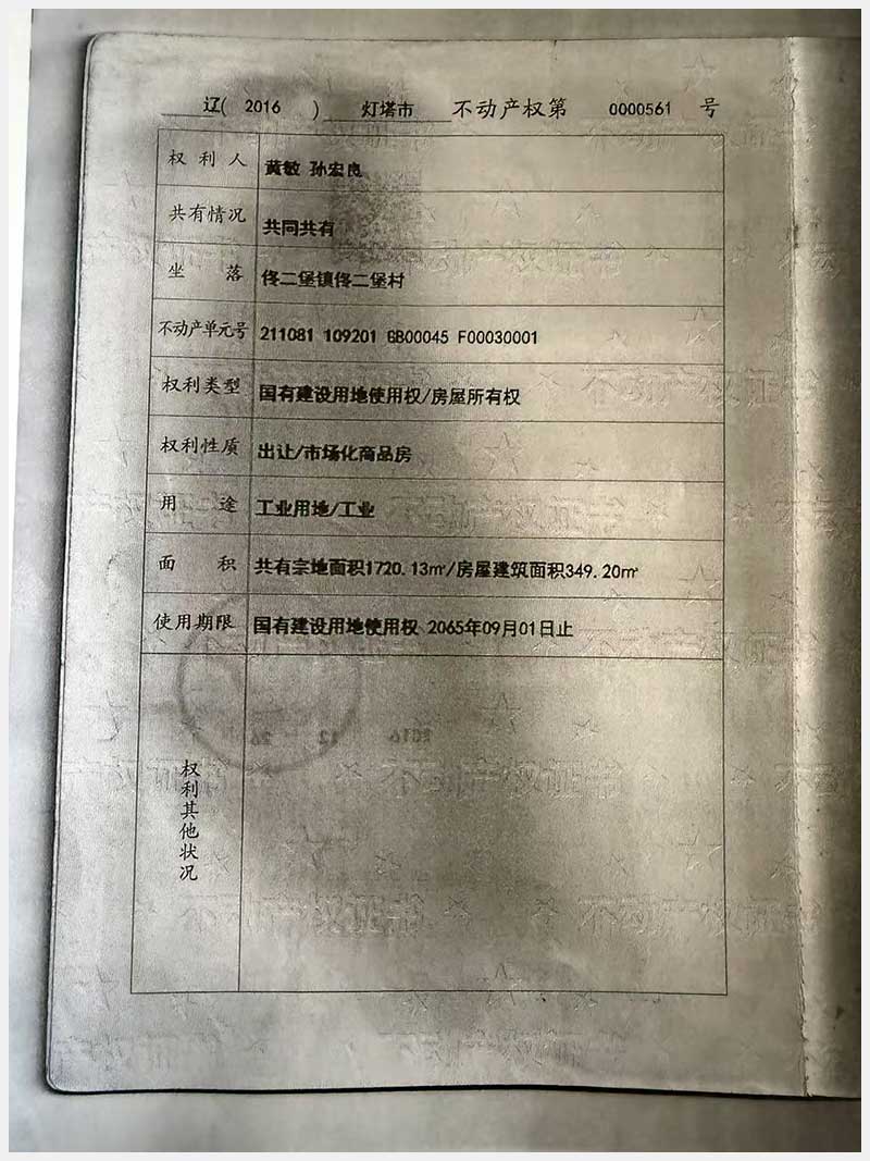 名稱:燈塔市佟二堡鎮(zhèn)佟二堡村房產(chǎn)及土地使用權(quán) 面積:房產(chǎn):1954.46㎡;土地:1720.13㎡ 瀏覽次數(shù):153