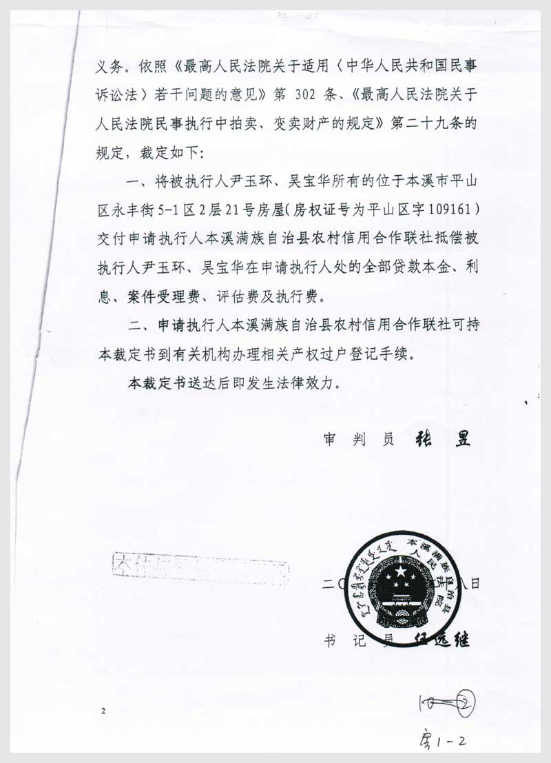 4號(hào) 本溪市平山區(qū)永豐街5-1區(qū)2層21號(hào)房產(chǎn)1處