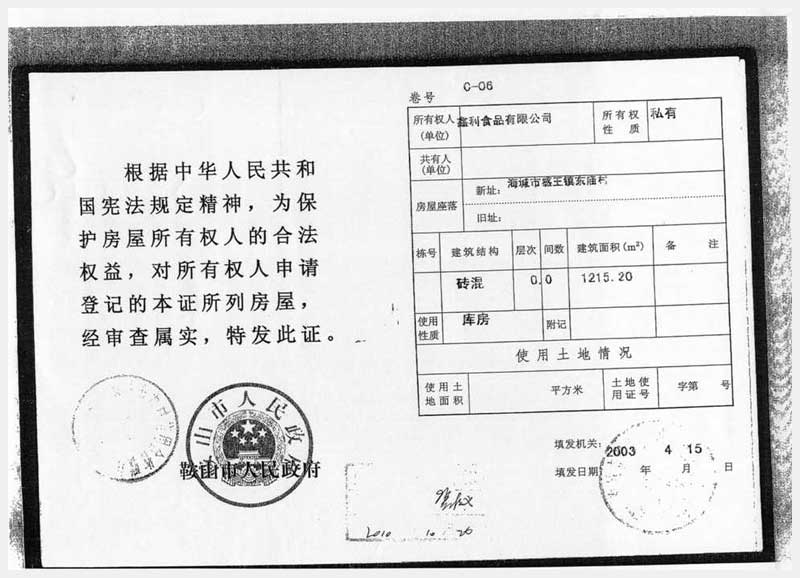 30號(hào) 鑫利食品所屬的位于感王鎮(zhèn)東廟村的房產(chǎn)及土地使用權(quán)