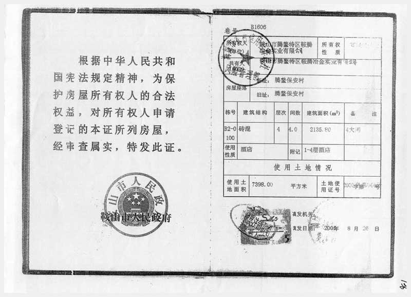 81號 海城市騰鰲鎮(zhèn)保安村酒店及附屬品