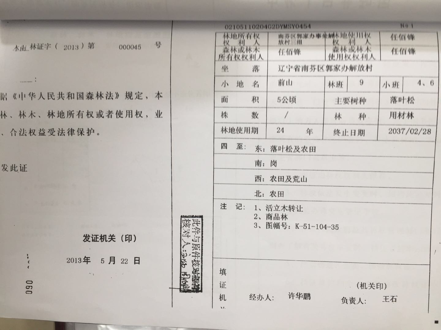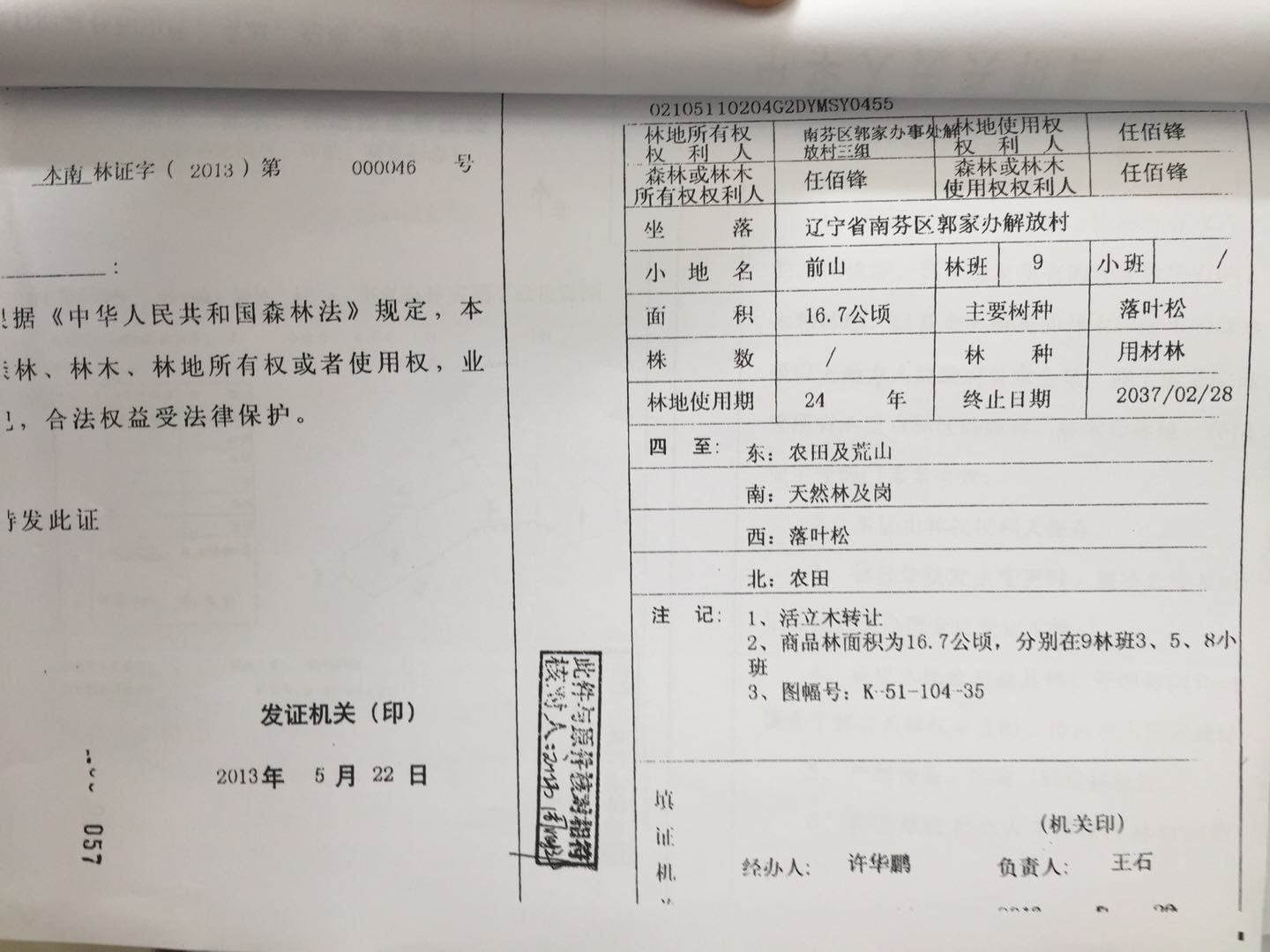 15號(hào) 本溪市南芬區(qū)郭家辦事處解放村林地31處