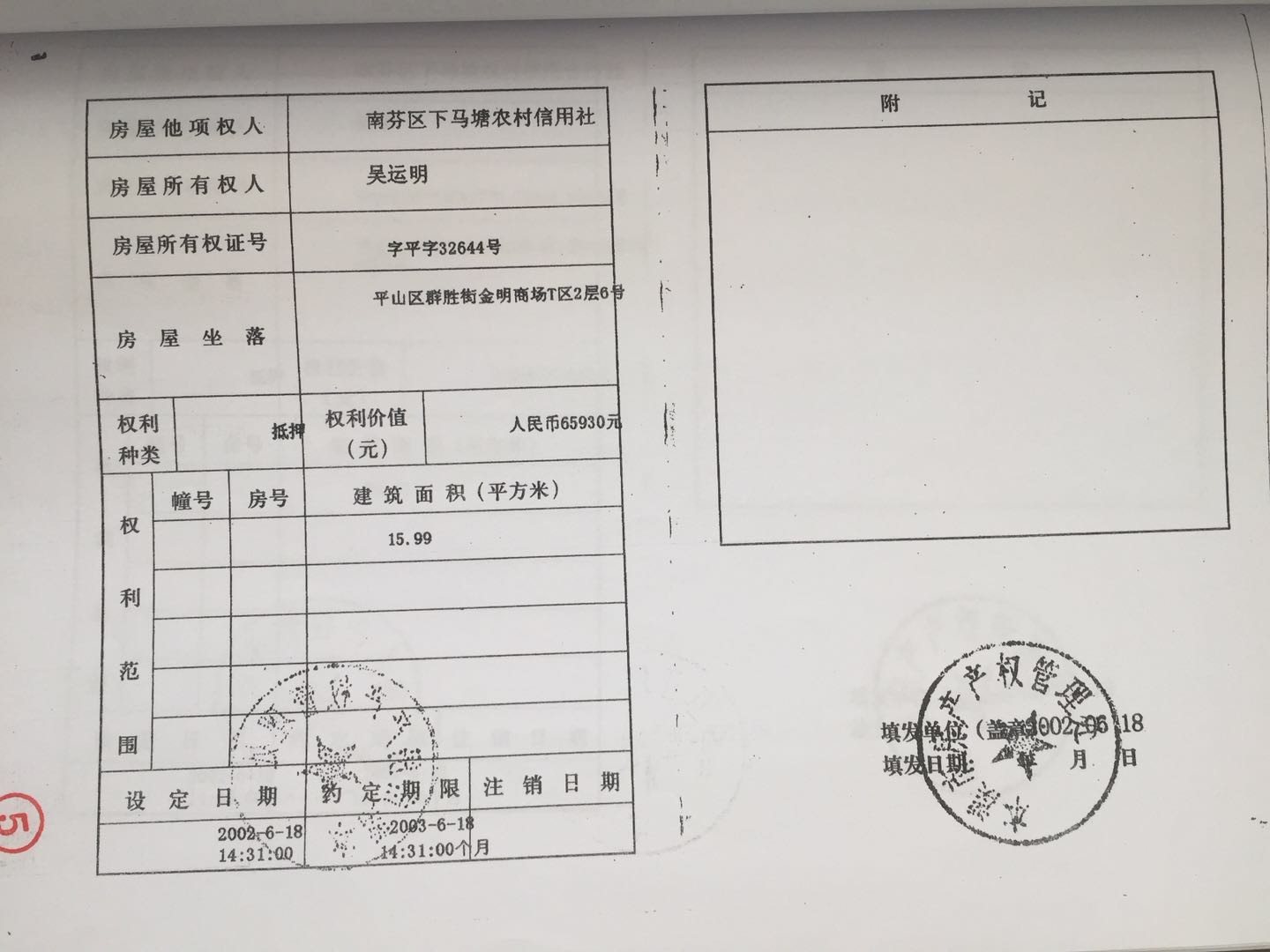 地址:平山區(qū)群勝街金明商場 標(biāo)的號:25