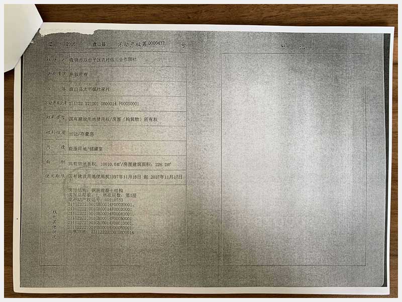 2號 盤錦盤山縣太平鎮(zhèn)杜家村房產(chǎn)及土地使用權(quán)(凌天冷凍有限公司)