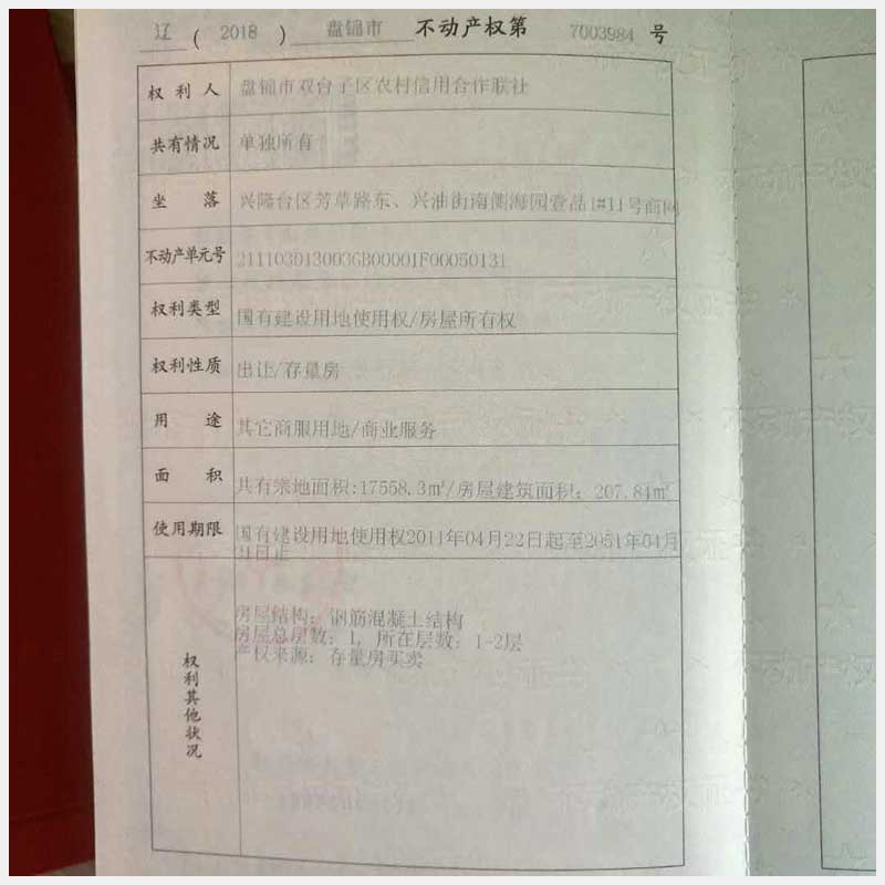 17號(hào) 盤(pán)錦渤海地區(qū)海園商網(wǎng)0008棟11號(hào)房產(chǎn)(李陽(yáng))