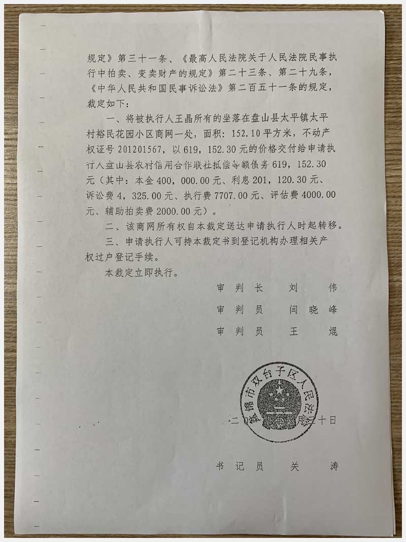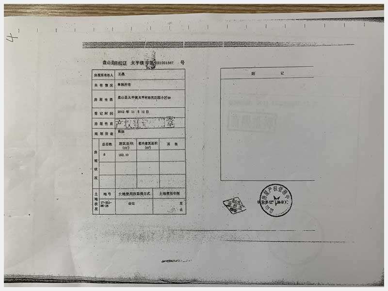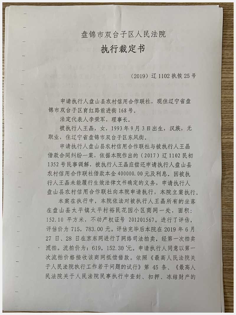 地址:盤錦盤山縣太平鎮(zhèn)太平村裕民花園小區(qū)4#(王晶) 標的號:29