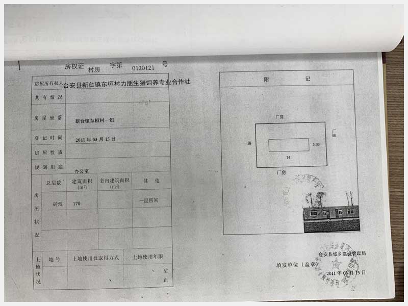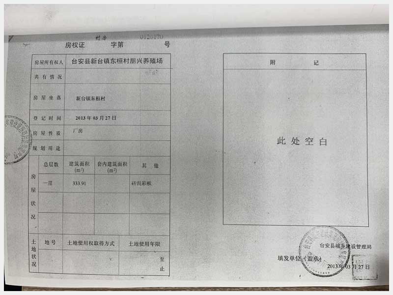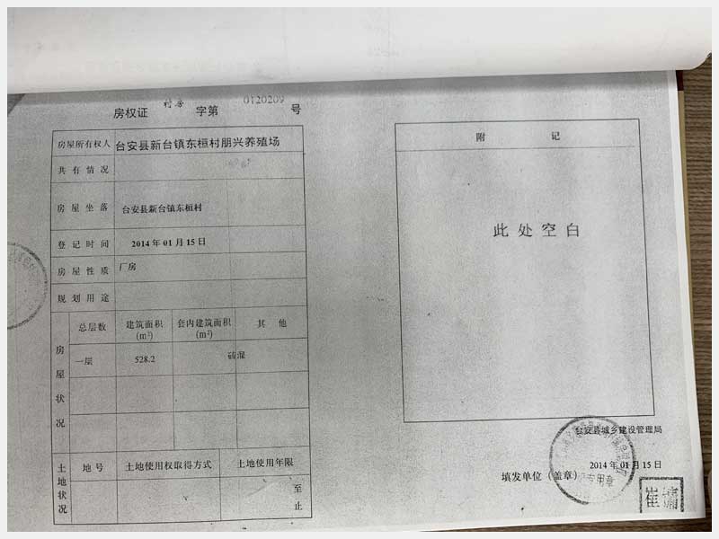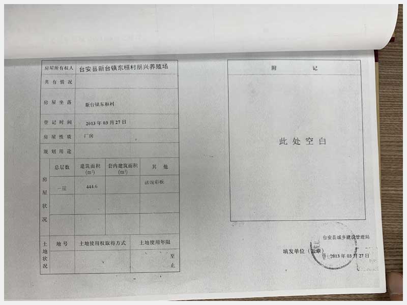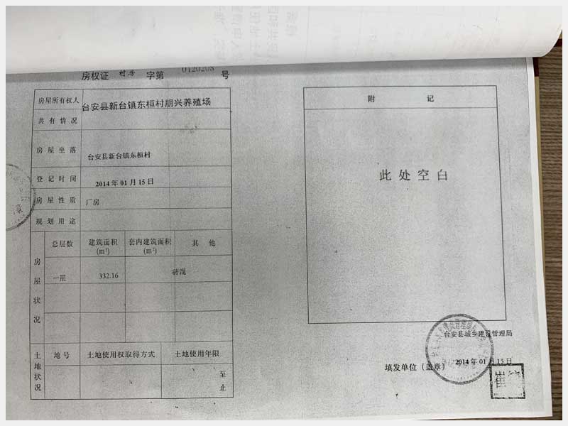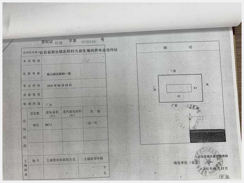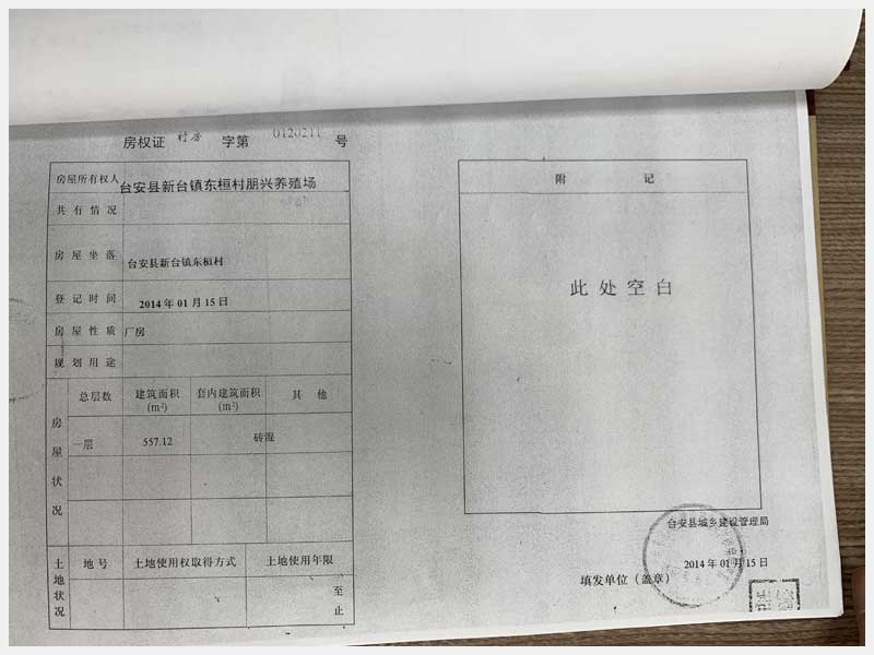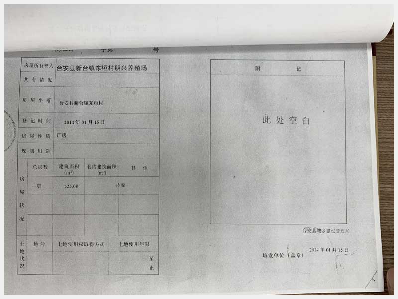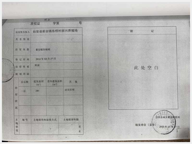 名稱:新臺鎮(zhèn)東桓村朋興養(yǎng)殖場15處房產(chǎn)及土地 面積:房產(chǎn):6009.6㎡、土地:6393.25㎡ 瀏覽次數(shù):1470