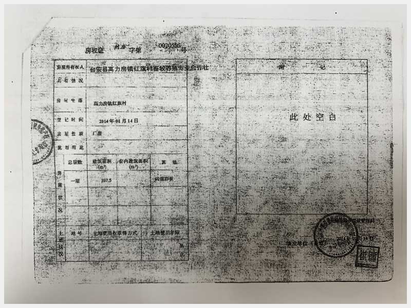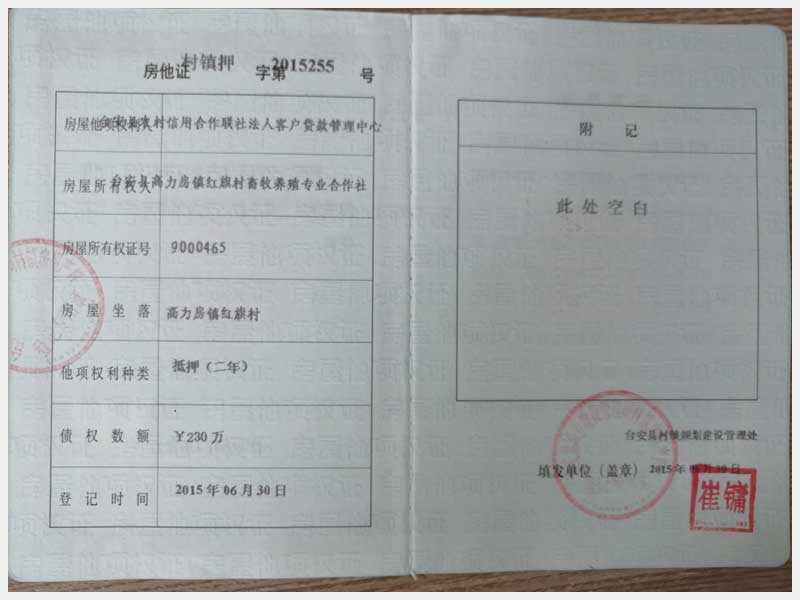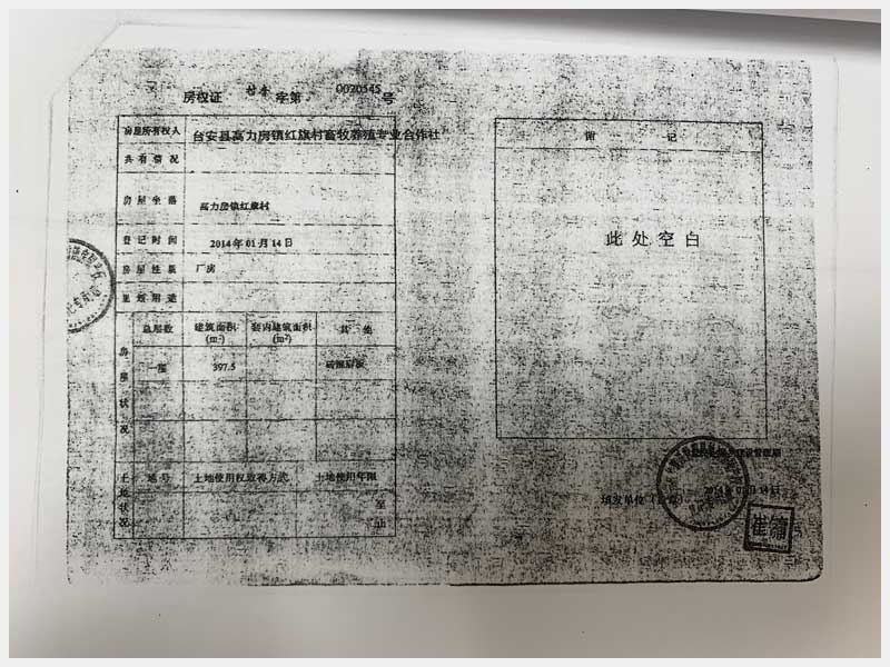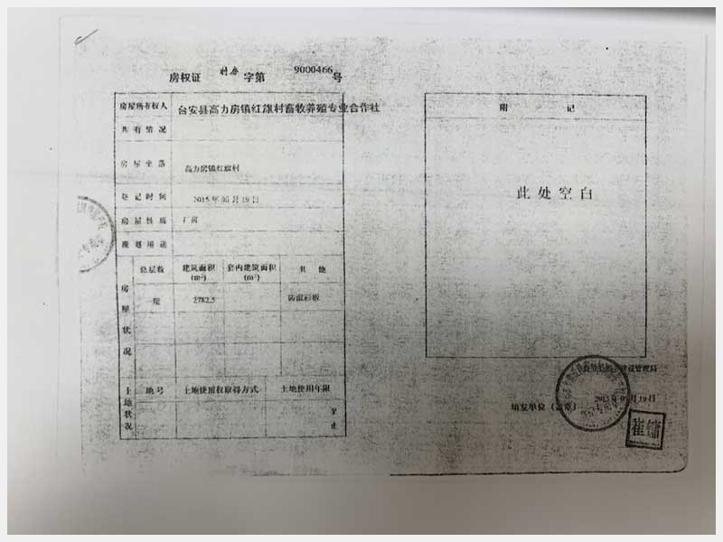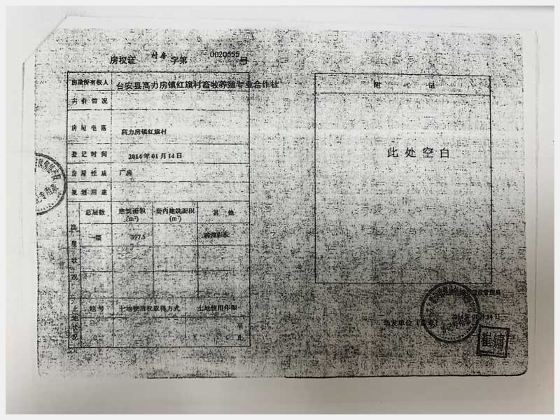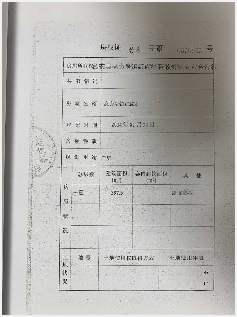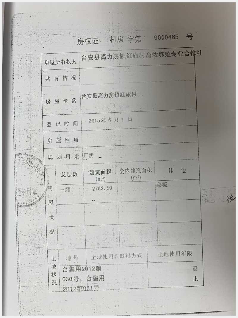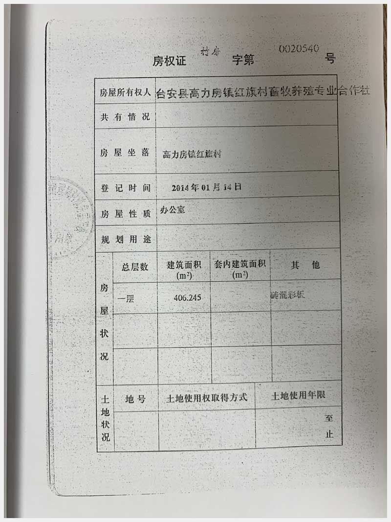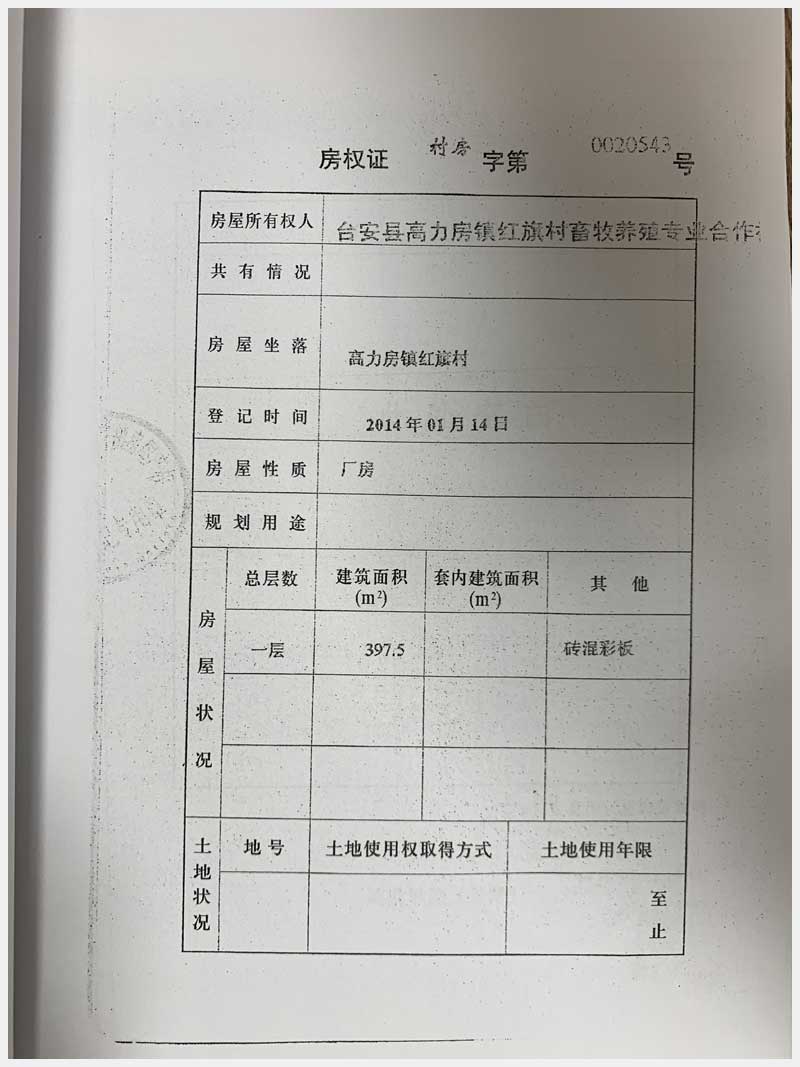 名稱:臺安縣高力房鎮(zhèn)紅旗村畜牧養(yǎng)殖專業(yè)合作社 面積:房產(chǎn):10559.98㎡、土地:19807.47㎡ 瀏覽次數(shù):1523
