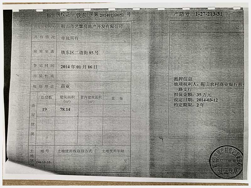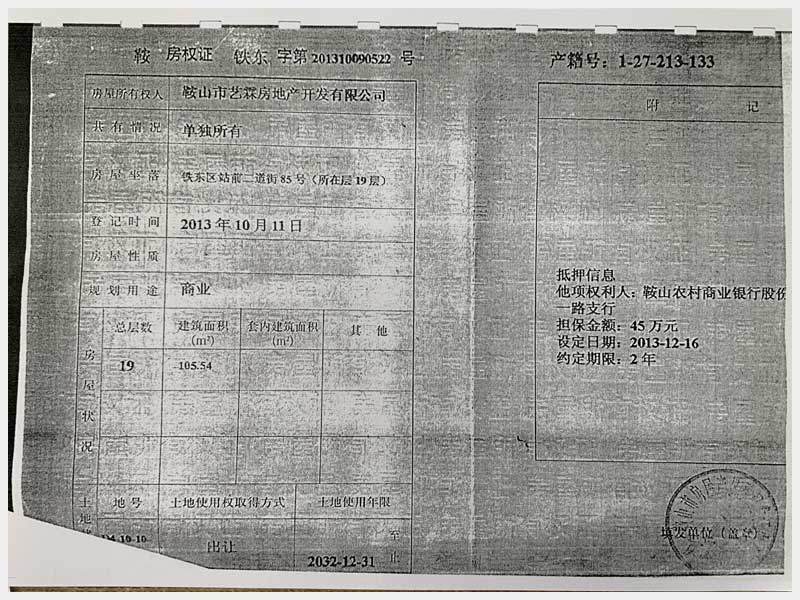 名稱:鞍山市鐵東區(qū)二道街85號房產(chǎn) 面積:1873.32㎡ 瀏覽次數(shù):1666
