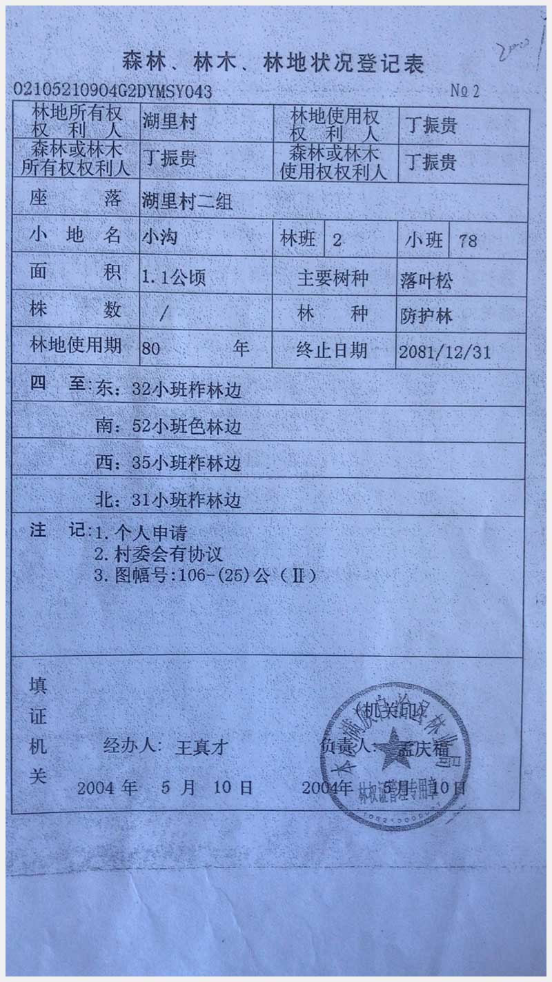 78號 本溪滿族自治縣東營坊鄉(xiāng)湖里村二組紅松落葉林