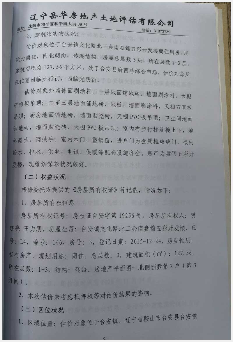 69號 臺安鎮(zhèn)文化路北工會南盤錦五彩開發(fā)樓房產(chǎn)