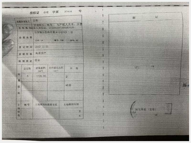 地址:臺(tái)安鎮(zhèn)臺(tái)盤路北愛(ài)家小區(qū) 標(biāo)的號(hào):75