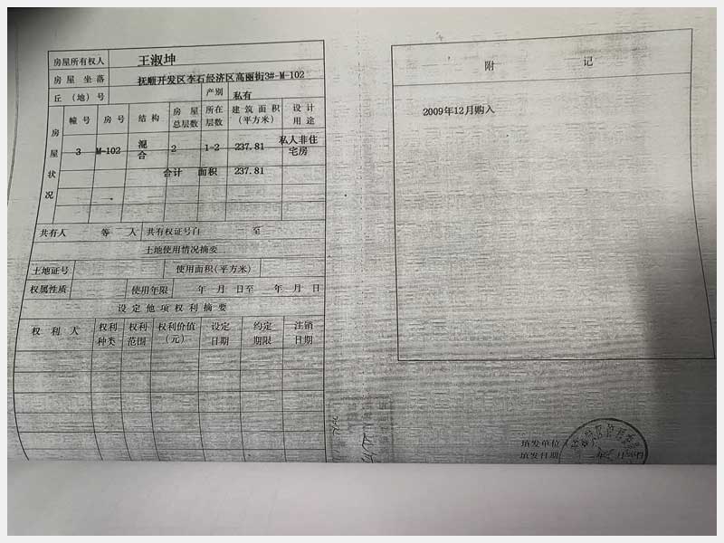 4號 撫順開發(fā)區(qū)李石經(jīng)濟區(qū)高麗街3#-M-102房產(chǎn)