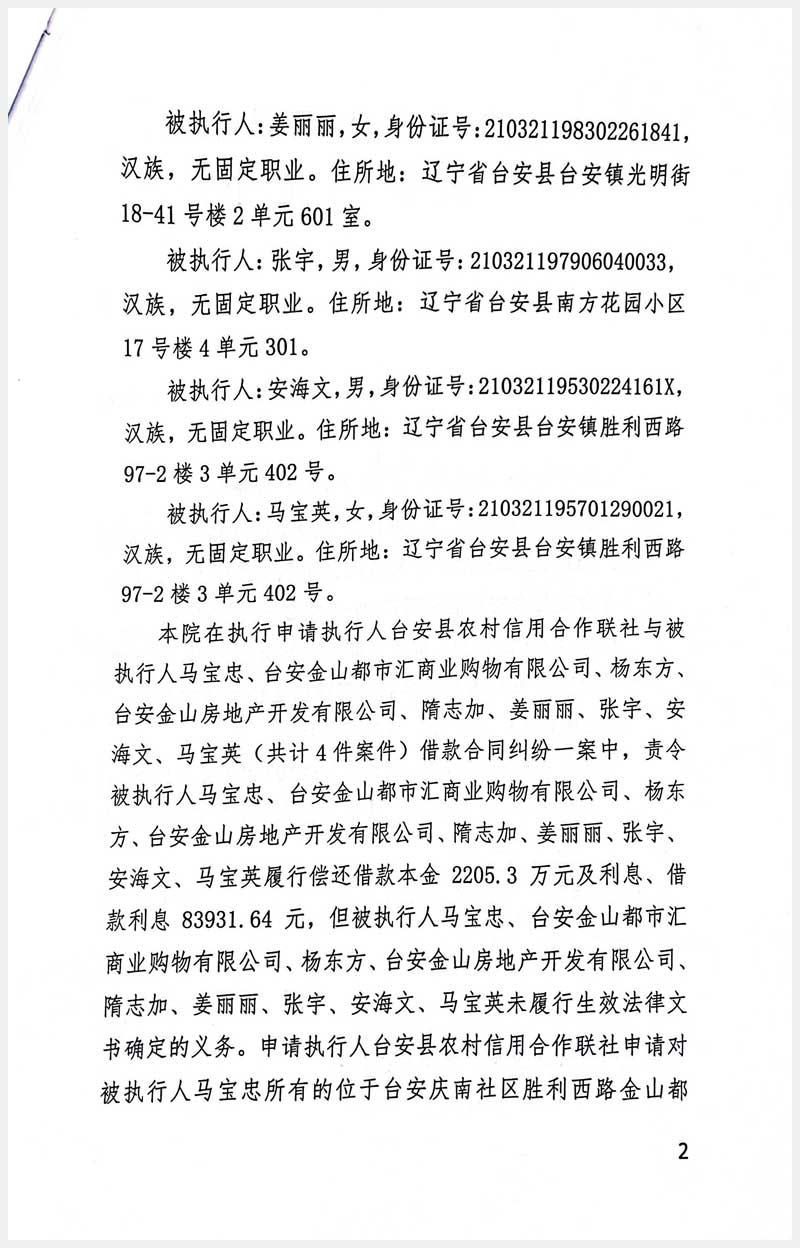 地址:臺安慶南社區(qū)勝利西路金山都市匯 標的號:86-5